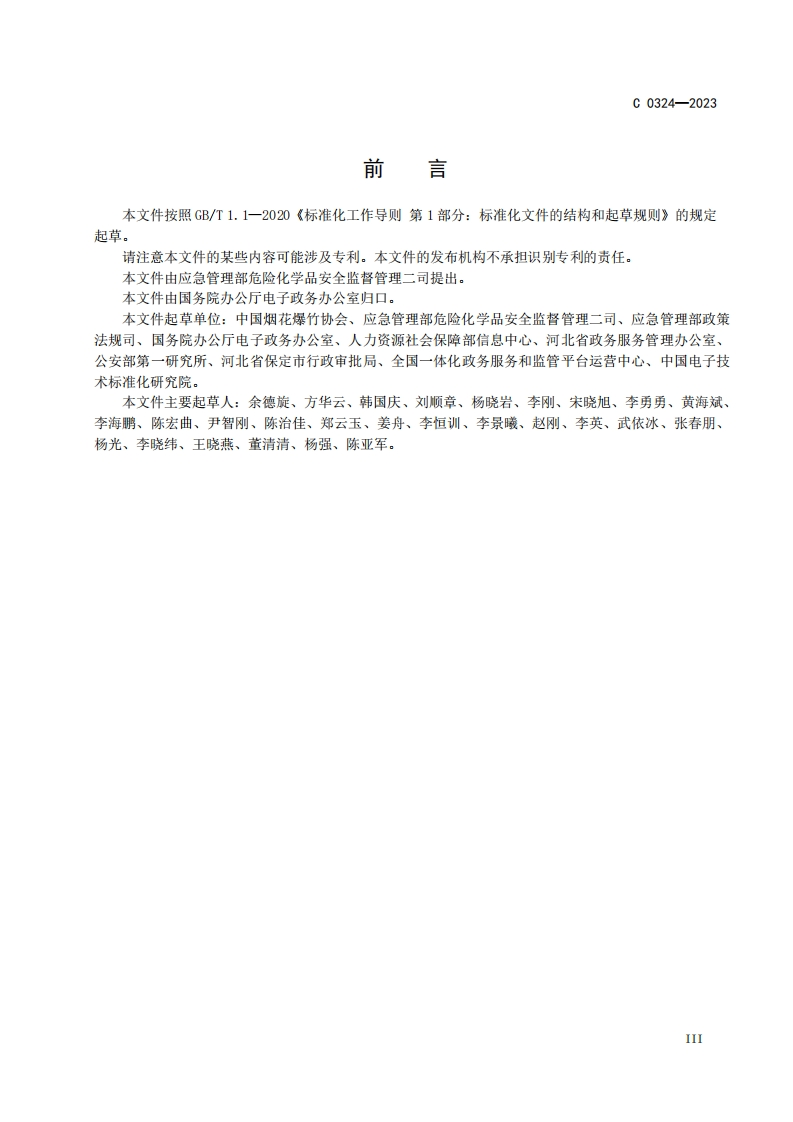 全国一体化政务服务平台电子证照烟花爆竹经营(零售)许可证348072@abc前天发布关注私信2.49MB21页036全国一体化政务服务平台电子证照烟花爆竹经营(零售)许可证此内容为付费资源,请付费后查看¥19¥23黄金会员免费钻石会员免费立即购买您当前未登录!建议登陆后购买,可保存购买订单付费资源 第1页 / 共21页 第2页 / 共21页 第3页 / 共21页 第4页 / 共21页 第5页 / 共21页 试读已结束,还剩16页,您可下载完整版后进行离线阅读 THE END标准规范 文本预览 10s35.240.99CCS L 67ZWEW全国一体化政务服务平台标准C0324-2023全国一体化政务服务平台电子证照烟花爆竹经营(零售)许可证2023-06-30发布2023-06-30实施国务院办公厅电子政务办公室发布应急管理部危险化学品安全监督管理二司 查看更多 收起部分 喜欢就支持一下吧收藏