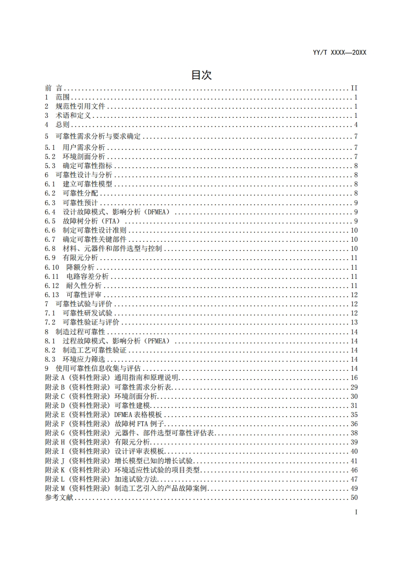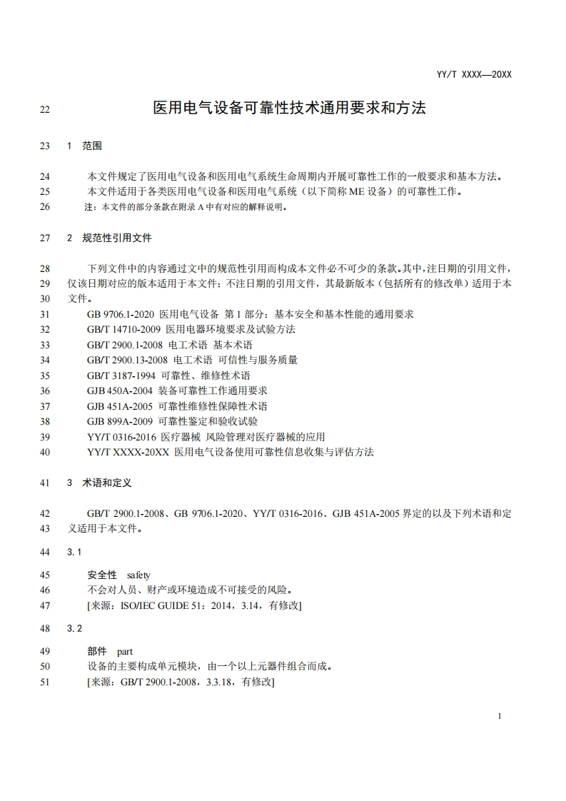YY/T XXXX-20XXICS11.010C0530中华人民共和国医药行业标准YY/T XXXX-20XX医用电气设备可靠性技术通用要求和方法General requirements and methods for reliability technology of medical electricalequipment(征求意见稿)(本稿完成日期:2020.7.16)XXXX-XX-Xx发布XXXX-Xx-XX实施国家药品监督管理局发布Unrestricted