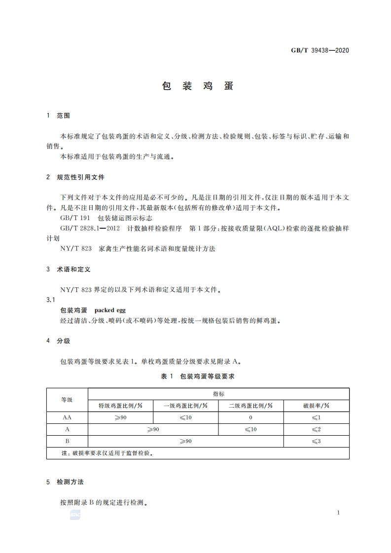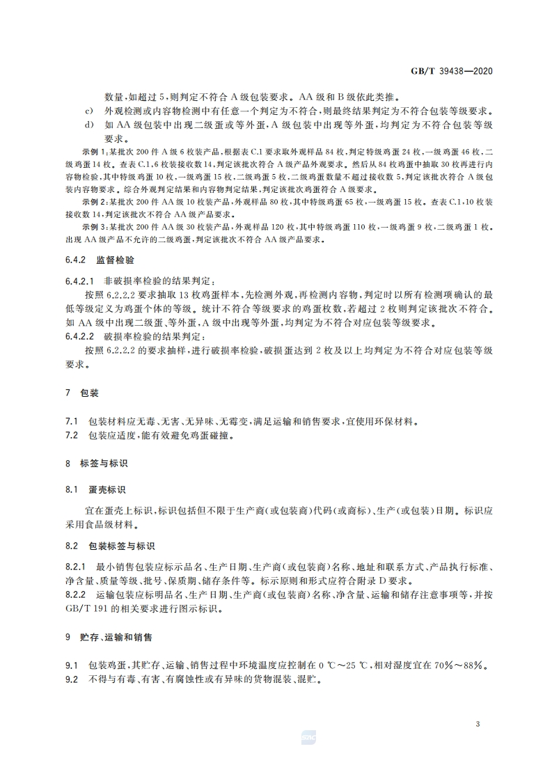 包装鸡蛋Packedegg348072@abc前天发布关注私信5.55MB12页049包装鸡蛋Packedegg此内容为付费资源,请付费后查看¥19¥23黄金会员免费钻石会员免费立即购买您当前未登录!建议登陆后购买,可保存购买订单付费资源 第1页 / 共12页 第2页 / 共12页 第3页 / 共12页 第4页 / 共12页 第5页 / 共12页 试读已结束,还剩7页,您可下载完整版后进行离线阅读 THE END标准规范 文本预览 ICS67.120.20B45GB中华人民共和国国家标准GB/T39438-2020网包装鸡蛋Packed egg2020-11-19发布2021-06-01实施国家市场监督管理总局发布国家标准化管理委员会 查看更多 收起部分 喜欢就支持一下吧收藏