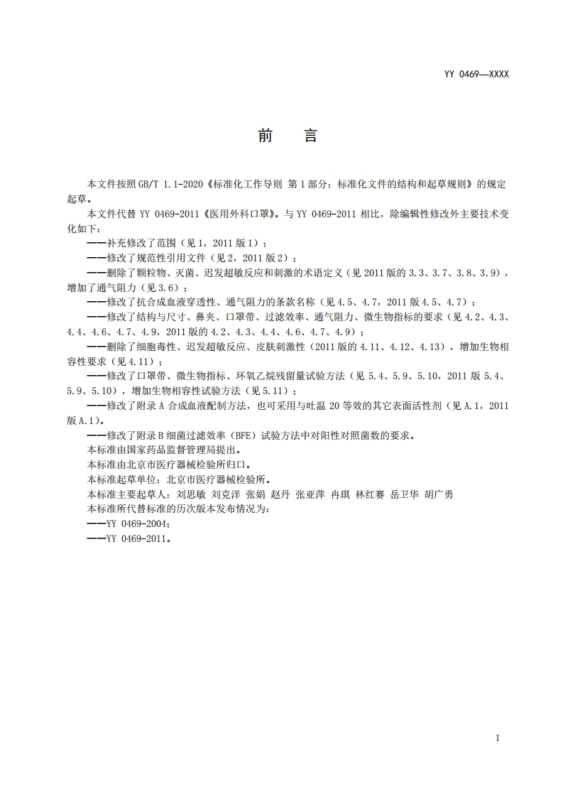 医用外科口罩SurgicalMask(征求意见稿)(本稿完成日期_2020811)348072@abc昨天发布关注私信0.50MB18页043医用外科口罩SurgicalMask(征求意见稿)(本稿完成日期_2020811)此内容为付费资源,请付费后查看¥19¥23黄金会员免费钻石会员免费立即购买您当前未登录!建议登陆后购买,可保存购买订单付费资源 第1页 / 共18页 第2页 / 共18页 第3页 / 共18页 第4页 / 共18页 第5页 / 共18页 试读已结束,还剩13页,您可下载完整版后进行离线阅读 THE END标准规范 文本预览 ICS11.140C48中华人民共和国医药行业标准YY 0469-XXXX代替YY0469-2011医用外科口罩Surgical Mask(征求意见稿)(本稿完成日期:2020.8.11)XXXX-XX-XX发布XXXX-XX-XX实施国家药品监督管理局发布 查看更多 收起部分 喜欢就支持一下吧收藏