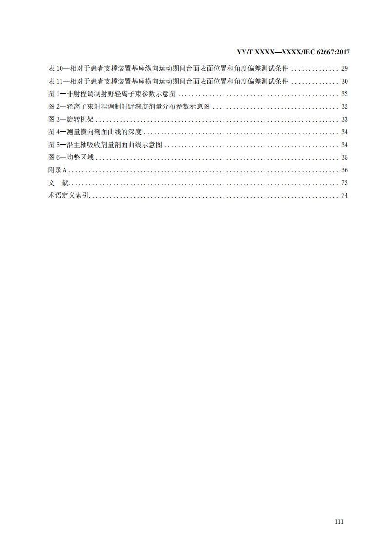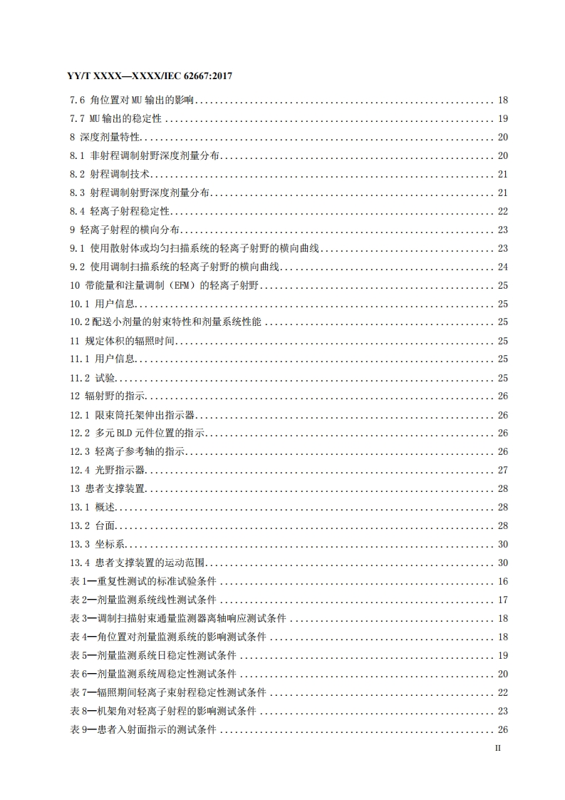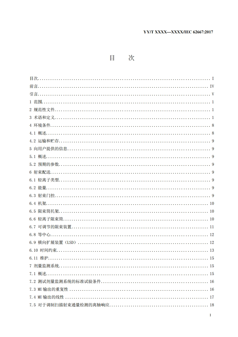 ICS11.040.50C43YY中华人民共和国医药行业标YY/T XXXX-XXXX/IEC 62667:2017医用电气设备医用轻离子束设备性能特性Medical electrical equipment -Medical light ion beam equipment-Performance Characteristics(IEC62667:2017,IDT)(征求意见稿)本稿完成日期:2019-07-04XXXX-XX-XX发布XXXX-XX-XX实施国家药品监督管理局发布