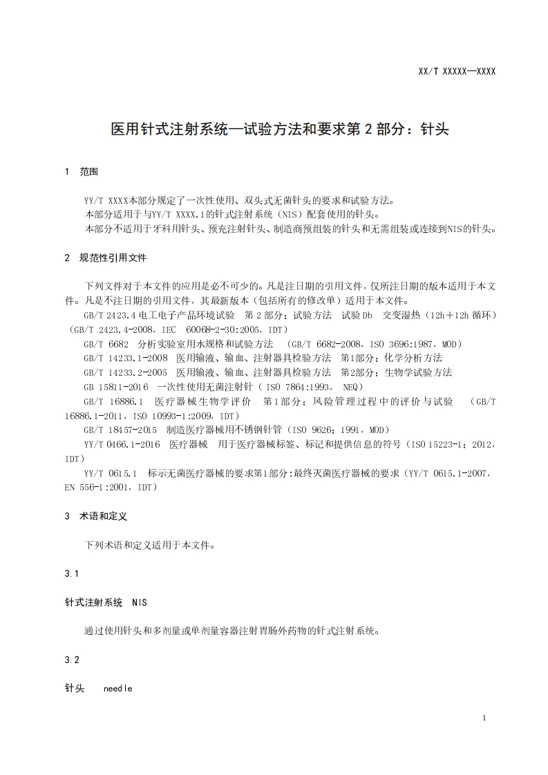医用针式注射系统要求和试验方法第2部分_针头Jeedle-basediniectionsystemsformedicaluseRequirementsandtestmethodsPart2_Needles(征求意见稿)348072@abc昨天发布关注私信0.81MB22页021医用针式注射系统要求和试验方法第2部分_针头Jeedle-basediniectionsystemsformedicaluseRequirementsandtestmethodsPart2_Needles(征求意见稿)此内容为付费资源,请付费后查看¥19¥23黄金会员免费钻石会员免费立即购买您当前未登录!建议登陆后购买,可保存购买订单付费资源 第1页 / 共22页 第2页 / 共22页 第3页 / 共22页 第4页 / 共22页 第5页 / 共22页 试读已结束,还剩17页,您可下载完整版后进行离线阅读 THE END标准规范 文本预览 ICS11.040.20C31中华人民共和国医药行业标准YY/TXXXXX-XXXX医用针式注射系统要求和试验方法第2部分:针头Needle-based injection systems for medical use -Requirements and test methods-Part 2:Needles(征求意见稿)(本稿完成日期:20197-31)XXXX-XX-XX发布XXXX-Xx-XX实施发布 查看更多 收起部分 喜欢就支持一下吧收藏
