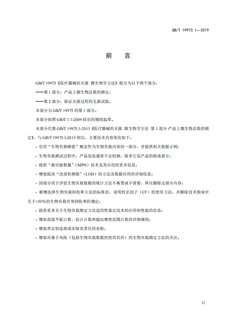 ICS点击此处添加1CS号点击此处添加中国标准文献分类号中华人民共和国国家标准GB/T19973.1-2019代替GB/T19973.1-2015医疗保健产品灭菌微生物学方法第1部分:产品上微生物总数的测定Sterilization of medical devices-Microbiological methods-Part 1:Determination of a population of microorganisms on products(IS011737-1:2018,IDT)文稿版次选择-XX-XX发布XXXX-XX-XX实施中华人民共和国国家质量监督检验检疫总局中国国家标准化管理委员会发布
