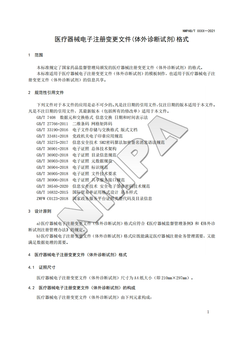 医疗器械电子注册变更文件(体外诊断试剂)Formsforelectroniccertificateofmedicaldeviceregistrationchangedocument(nvitrodiagnosticreagent)’囚348072@abc昨天发布关注私信0.61MB9页050医疗器械电子注册变更文件(体外诊断试剂)Formsforelectroniccertificateofmedicaldeviceregistrationchangedocument(nvitrodiagnosticreagent)’囚此内容为付费资源,请付费后查看¥19¥23黄金会员免费钻石会员免费立即购买您当前未登录!建议登陆后购买,可保存购买订单付费资源 第1页 / 共9页 第2页 / 共9页 第3页 / 共9页 第4页 / 共9页 第5页 / 共9页 试读已结束,还剩4页,您可下载完整版后进行离线阅读 THE END标准规范 文本预览 NMPAB国家药品监督管理局信息化标准NMPAB/T xxxx-2021医疗器械电子注册变更文件(体外诊断试剂)Forms for electronic certificate of medical device registration changedocument(In vitro diagnostic reagent)(征求意见稿)2021-XX-XX发布2021-XX-XX实施国家药品监督管理局发布 查看更多 收起部分 喜欢就支持一下吧收藏