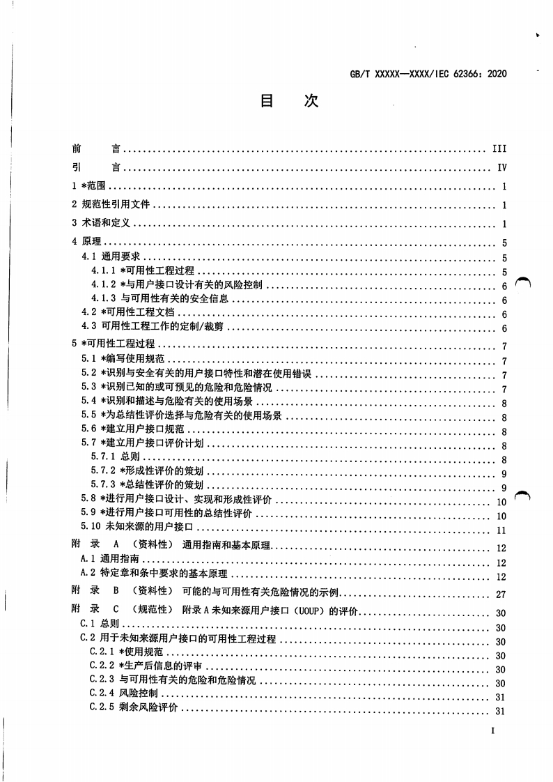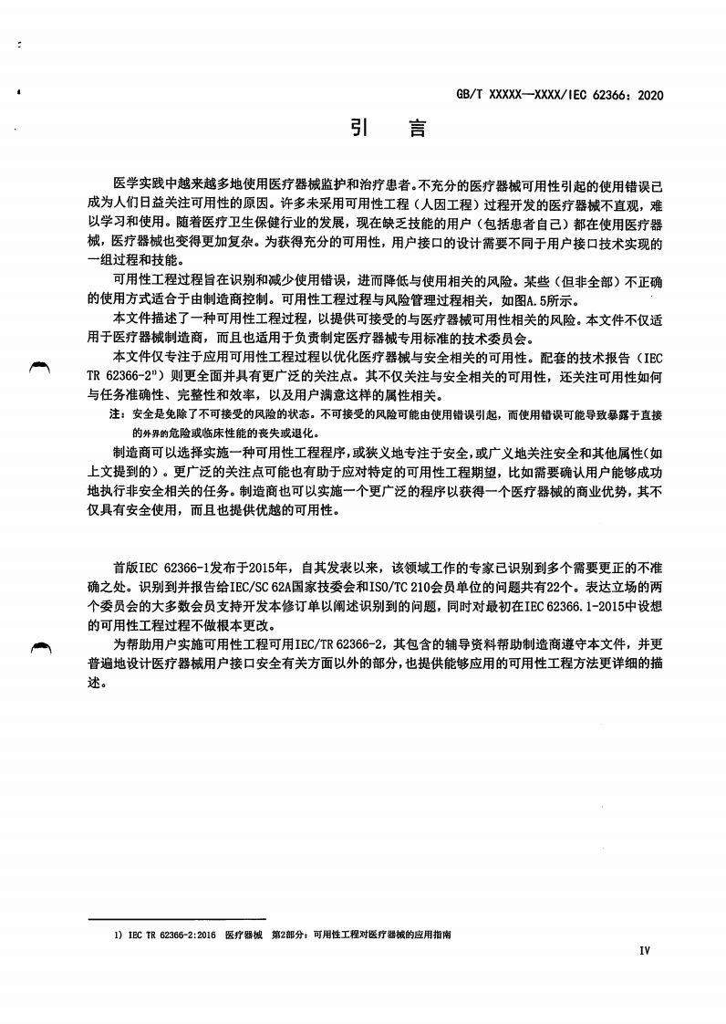 ICS11.040.01CCS C 30中华人民共和国国家标准GB/T XXXXX-XXXX/IEC 62366:2020医疗器械第1部分:可用性工程对医疗器械的应用Medical devices-Part 1:Application of usability engineering to medical devicesEC62366-1:2020,DT)(工作组讨论稿)(本草案完成时间:2022年7月8日)在提交反馈意见时,请将您知道的相关专利连同支持性文件一并附上。XXXX-Xx-XX发布XXXX-XX-XX实施国家市场监督管理总局国家标准化管理委员会发布