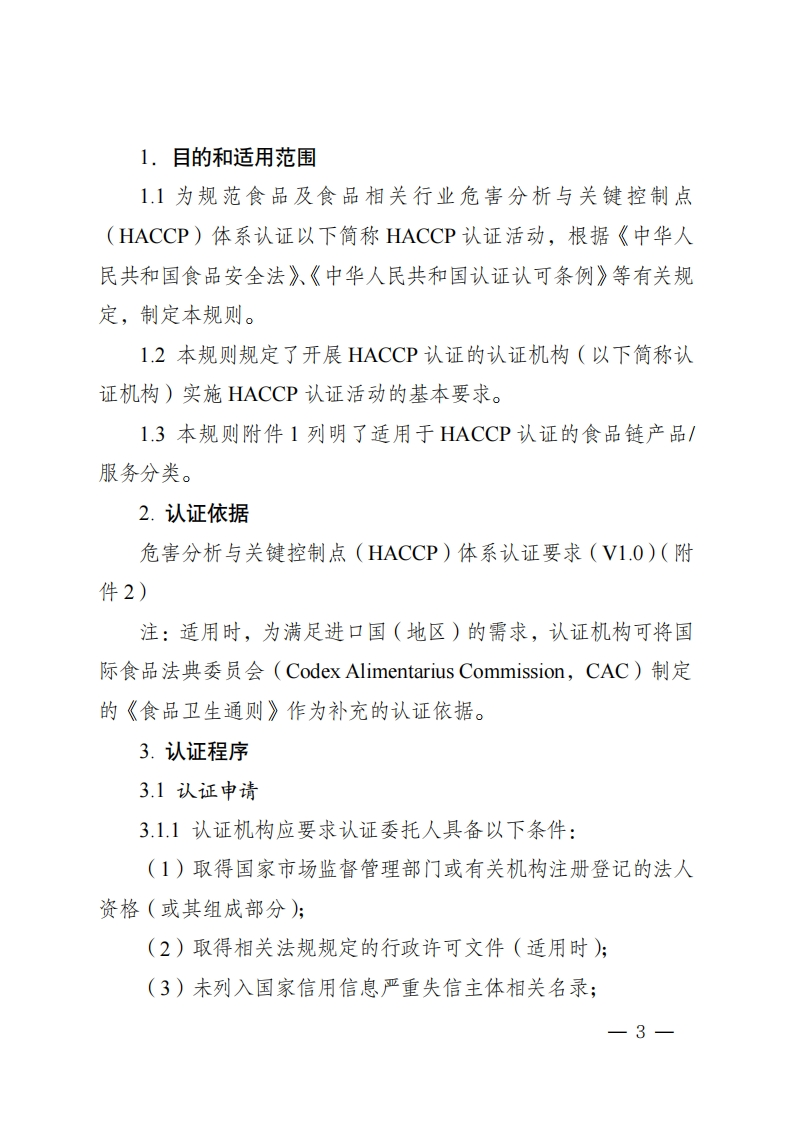 危害分析与关键控制点(HACCP)体系认证实施规则348072@abc昨天发布关注私信0.66MB76页033危害分析与关键控制点(HACCP)体系认证实施规则此内容为付费资源,请付费后查看¥19¥23黄金会员免费钻石会员免费立即购买您当前未登录!建议登陆后购买,可保存购买订单付费资源 第1页 / 共76页 第2页 / 共76页 第3页 / 共76页 第4页 / 共76页 第5页 / 共76页 试读已结束,还剩71页,您可下载完整版后进行离线阅读 THE END标准规范 文本预览 编号:CNCA-N-001:2021危害分析与关键控制点(HACCP)体系认证实施规则中国国家认证认可监督管理委员会发布1 查看更多 收起部分 喜欢就支持一下吧收藏