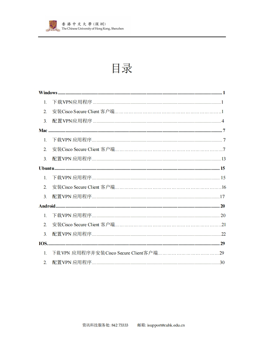 VPN用户手册348072@abc4个月前发布关注私信3.47MB31页042VPN用户手册此内容为付费资源,请付费后查看¥17¥32黄金会员免费钻石会员免费立即购买您当前未登录!建议登陆后购买,可保存购买订单付费资源 第1页 / 共31页 第2页 / 共31页 试读已结束,还剩29页,您可下载完整版后进行离线阅读 THE END标准规范 文本预览 香港中文大學(深圳)The Chinese University of Hong Kong,ShenzhenVPN用户手册资讯科技服务处:84273333邮箱:isupport@cuhk.ediu.cm 查看更多 收起部分 喜欢就支持一下吧收藏
