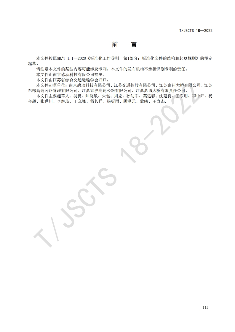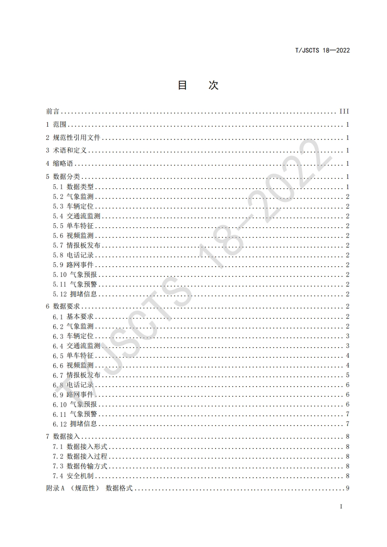 台数据接入规范高速路网云控Dataaccessspecificationforcloudcontrolplatformofexpresswaynetwork348072@abc昨天发布关注私信0.49MB18页024台数据接入规范高速路网云控Dataaccessspecificationforcloudcontrolplatformofexpresswaynetwork此内容为付费资源,请付费后查看¥19¥23黄金会员免费钻石会员免费立即购买您当前未登录!建议登陆后购买,可保存购买订单付费资源 第1页 / 共18页 第2页 / 共18页 第3页 / 共18页 第4页 / 共18页 第5页 / 共18页 试读已结束,还剩13页,您可下载完整版后进行离线阅读 THE END标准规范 文本预览 ICS35.240.60CCS R 07团体标准T/JSCTS 18-2022高速路网云控平台数据接入规范Data access specification for cloud control platform of expressway networkT/JSCTS2022-9-30发布2022-12-1实施江苏省综合交通运输学会发布 查看更多 收起部分 喜欢就支持一下吧收藏