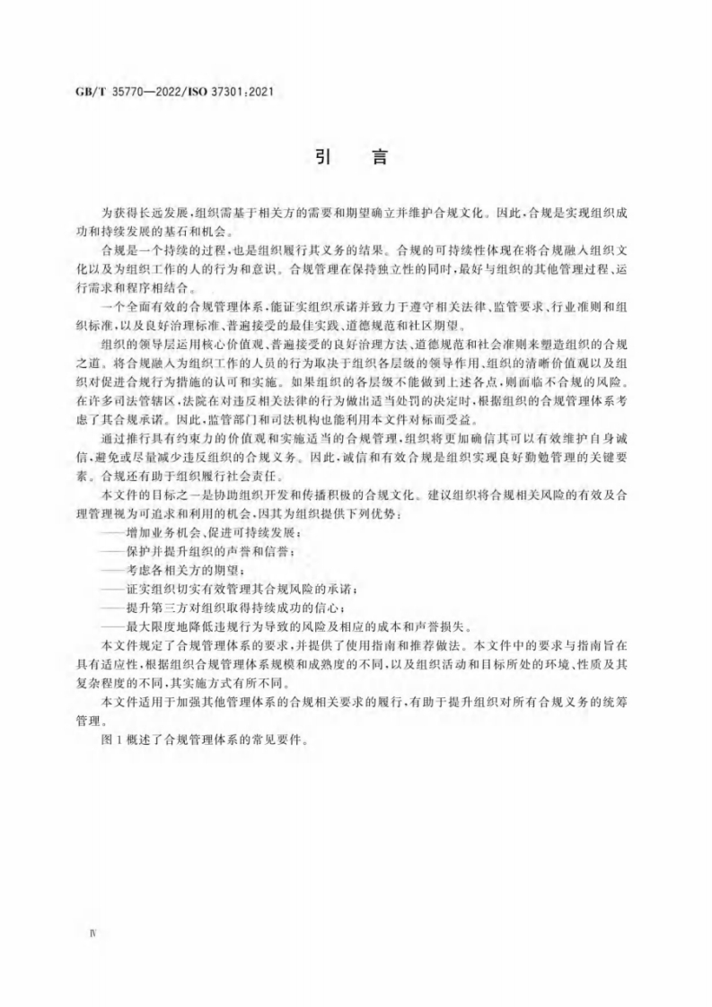 1Cs03.100.01CCS A 02B中华人民共和国国家标准GB/T35770-2022/1S037301:2021代替GB/T35770一2017合规管理体系要求及使用指南Compliance management systems-Requirements with guidance for use(IS037301:2021,IDT)2022-10-12发布2022-10-12实施国家市场监督管理总局国家标准化管理委员会发布