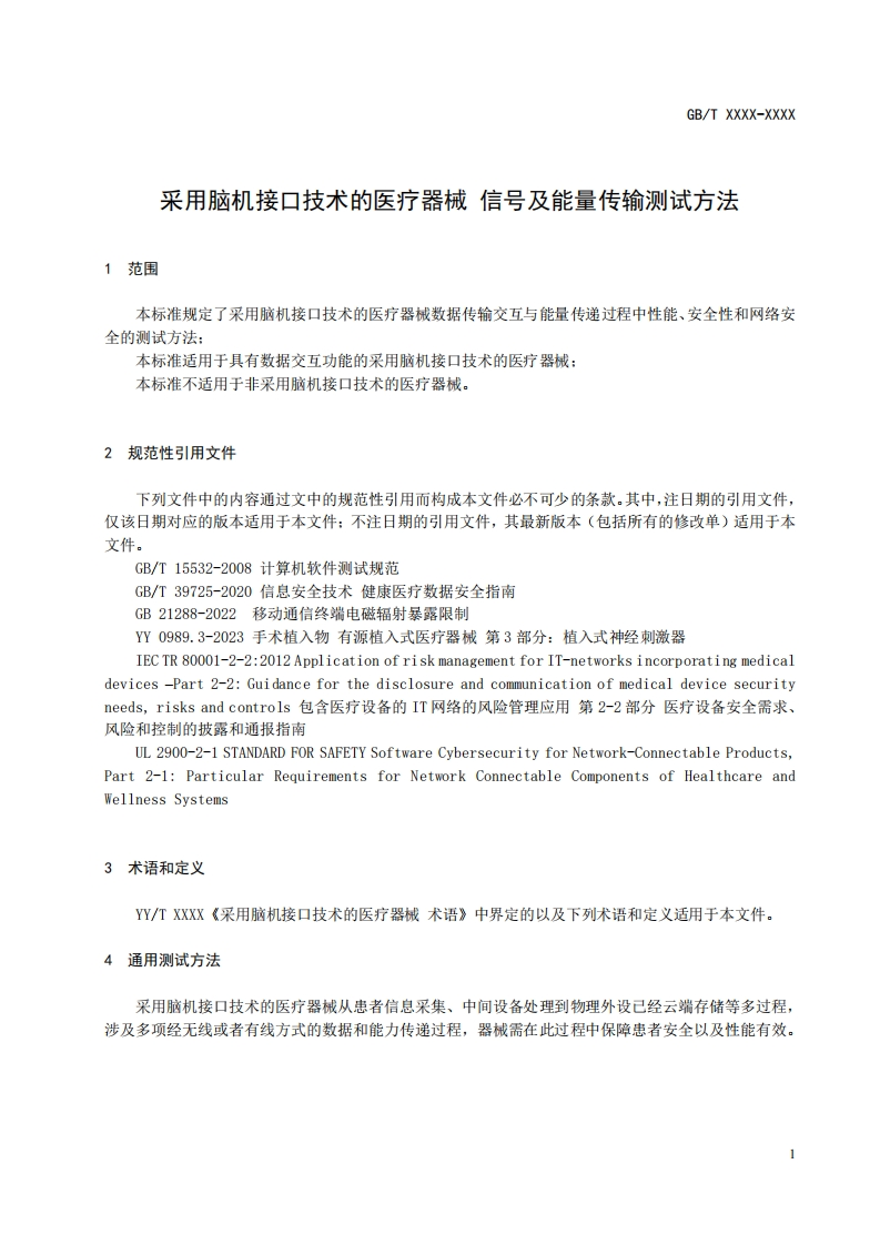 国标立项草案稿–采用脑机接口技术的医疗器械信号及能量传输测试方法348072@abc昨天发布关注私信0.31MB10页030国标立项草案稿–采用脑机接口技术的医疗器械信号及能量传输测试方法此内容为付费资源,请付费后查看¥19¥23黄金会员免费钻石会员免费立即购买您当前未登录!建议登陆后购买,可保存购买订单付费资源 第1页 / 共10页 第2页 / 共10页 第3页 / 共10页 第4页 / 共10页 第5页 / 共10页 试读已结束,还剩5页,您可下载完整版后进行离线阅读 THE END标准规范 文本预览 1CS11.040.40CCS C30中华人民共和国国家标准GB/T XXXX-XXXX采用脑机接口技术的医疗器械信号及能量传输测试方法Brain-computer interface medical -Test Methods for TransmissionPerformance20XX-XX-XX发布20XX-XX-XX实施唱贸证悬蓦玩蜂遥国家标准化管理委员会发布 查看更多 收起部分 喜欢就支持一下吧收藏