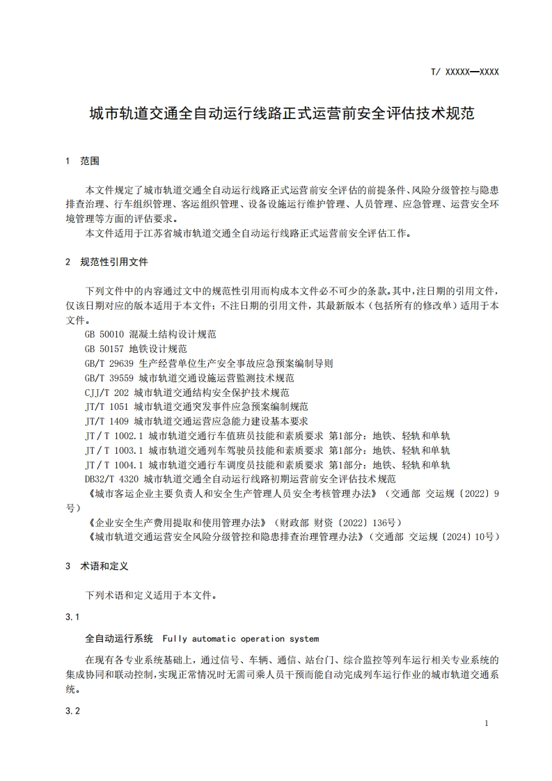 城市轨道交通全自动运行线路正式运营前安全评估技术规范Safetyevaluationbeforeformaloperationforfullyautomaticoperationsystemofurbanraitransit348072@abc昨天发布关注私信0.52MB42页041城市轨道交通全自动运行线路正式运营前安全评估技术规范Safetyevaluationbeforeformaloperationforfullyautomaticoperationsystemofurbanraitransit此内容为付费资源,请付费后查看¥19¥23黄金会员免费钻石会员免费立即购买您当前未登录!建议登陆后购买,可保存购买订单付费资源 第1页 / 共42页 第2页 / 共42页 第3页 / 共42页 第4页 / 共42页 第5页 / 共42页 试读已结束,还剩37页,您可下载完整版后进行离线阅读 THE END标准规范 文本预览 ces团体标准城市轨道交通全自动运行线路正式运营前安全评估技术规范Safety evaluation before formal operation for fully automatic operation system ofurban rail transit(征求意见稿)在提交反馈意见时,请将您知道的相关专利连同支持性文件一并附上。XXXX-XX-XX发布XXXX-XX-XX实施江苏省综合交通运输学会发布 查看更多 收起部分 喜欢就支持一下吧收藏