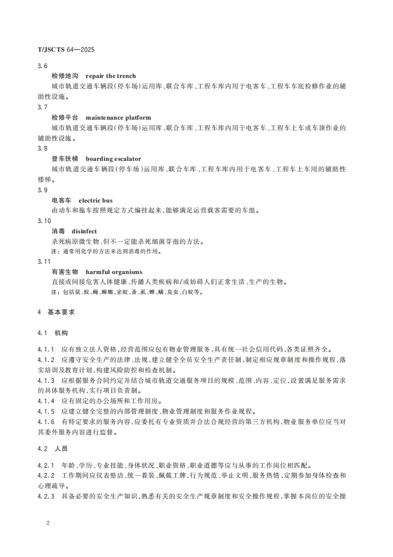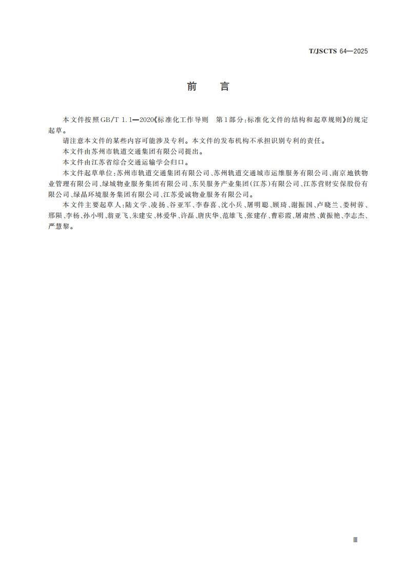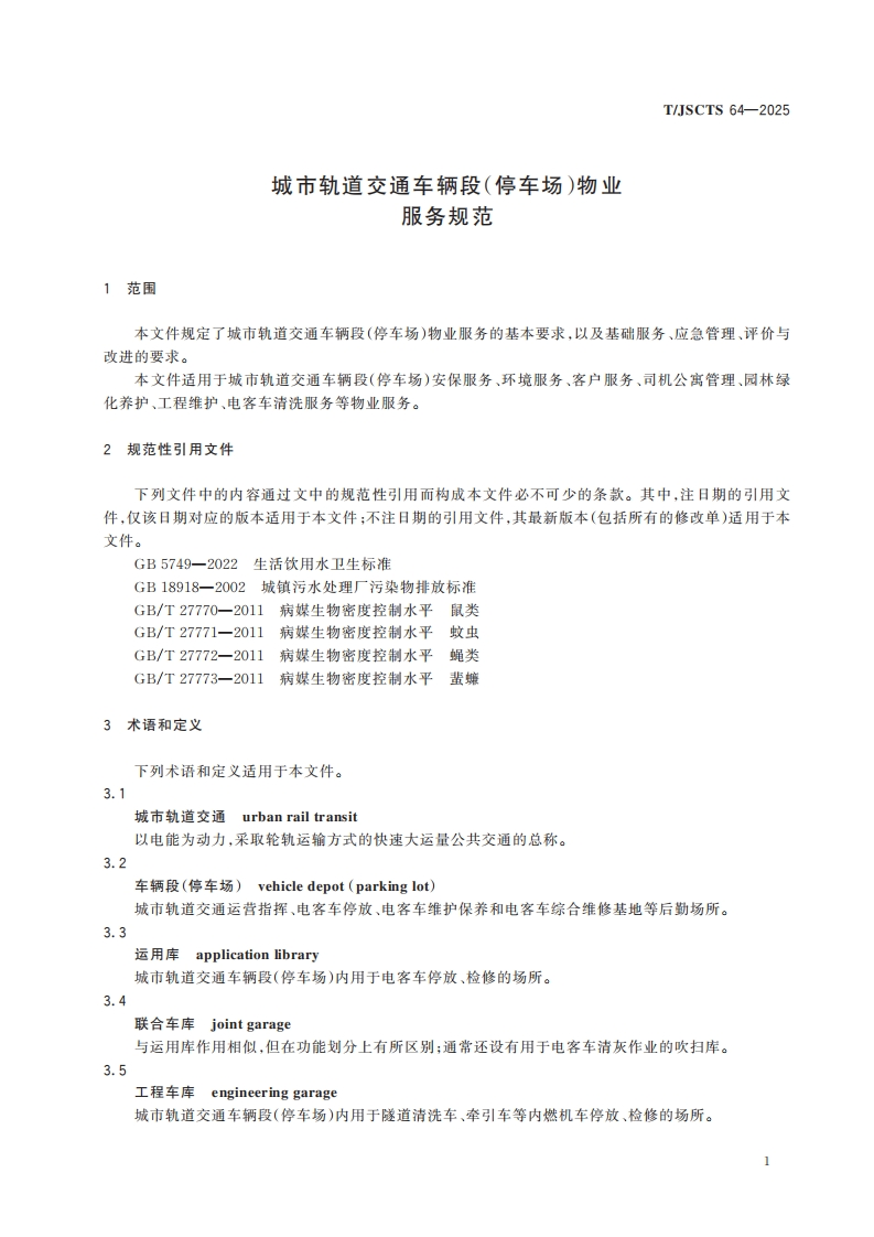 城市轨道交通车辆段(停车场)物业服务规范Propertyservicespecificationforurbanrailtransitvehicledepot(parkinglot_1348072@abc昨天发布关注私信0.48MB20页021城市轨道交通车辆段(停车场)物业服务规范Propertyservicespecificationforurbanrailtransitvehicledepot(parkinglot_1此内容为付费资源,请付费后查看¥19¥23黄金会员免费钻石会员免费立即购买您当前未登录!建议登陆后购买,可保存购买订单付费资源 第1页 / 共20页 第2页 / 共20页 第3页 / 共20页 第4页 / 共20页 第5页 / 共20页 试读已结束,还剩15页,您可下载完整版后进行离线阅读 THE END标准规范 文本预览 1CS91.140.30CCS P 45团体标准T/JSCTS 64-2025城市轨道交通车辆段(停车场)物业服务规范Property service specification for urban rail transit vehicle depot(parking lot)2025-04-07发布2025-06-01实施江苏省综合交通运输学会发布中国标准出版社出版 查看更多 收起部分 喜欢就支持一下吧收藏
