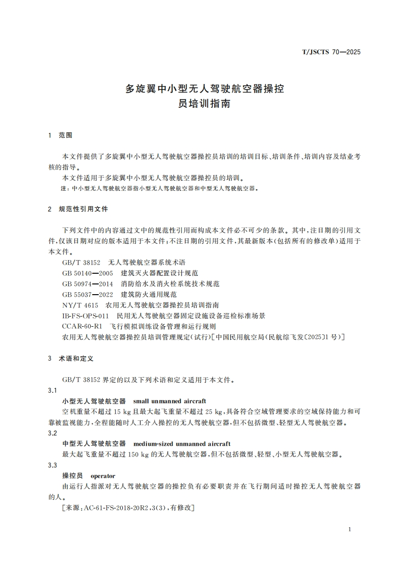 多旋翼中小型无人驾驶航空器操控员培训指南Trainingguideforsmallandmedium-sizedmulti-rotorunmannedaircraftoperator348072@abc昨天发布关注私信0.40MB21页038多旋翼中小型无人驾驶航空器操控员培训指南Trainingguideforsmallandmedium-sizedmulti-rotorunmannedaircraftoperator此内容为付费资源,请付费后查看¥19¥23黄金会员免费钻石会员免费立即购买您当前未登录!建议登陆后购买,可保存购买订单付费资源 第1页 / 共21页 第2页 / 共21页 第3页 / 共21页 第4页 / 共21页 第5页 / 共21页 试读已结束,还剩16页,您可下载完整版后进行离线阅读 THE END标准规范 文本预览 1Cs03.080.20CCS A 16团体标准T/JSCTS 70-2025多旋翼中小型无人驾驶航空器操控员培训指南Training guide for small and medium-sized multi-rotor unmanned aircraft operator2025-09-29发布2025-12-01实施江苏省综合交通运输学会发布中国标准出版社出版 查看更多 收起部分 喜欢就支持一下吧收藏