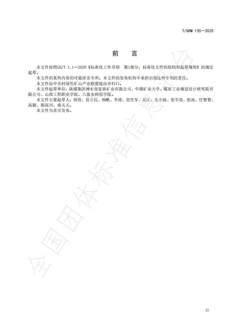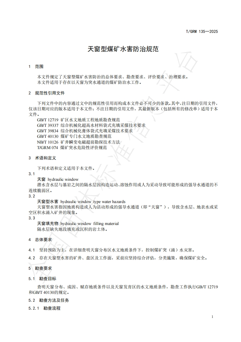 天窗型煤矿水害防治规范Technicalspecificationforpreventionandcontrolofwaterhazardsinskylighttypecoalmines348072@abc昨天发布关注私信0.44MB8页048天窗型煤矿水害防治规范Technicalspecificationforpreventionandcontrolofwaterhazardsinskylighttypecoalmines此内容为付费资源,请付费后查看¥19¥23黄金会员免费钻石会员免费立即购买您当前未登录!建议登陆后购买,可保存购买订单付费资源 第1页 / 共8页 第2页 / 共8页 第3页 / 共8页 第4页 / 共8页 第5页 / 共8页 试读已结束,还剩3页,您可下载完整版后进行离线阅读 THE END标准规范 文本预览 ICS73.020CCS D 10/19IGRM中关村绿色矿山产业联盟团体标准T/GRM135-2025天窗型煤矿水害防治规范Technical specification for prevention and control of water hazards in skylight typecoal mines国团体2025-08-11发布2025-08-11实施中关村绿色矿山产业联盟发布 查看更多 收起部分 喜欢就支持一下吧收藏