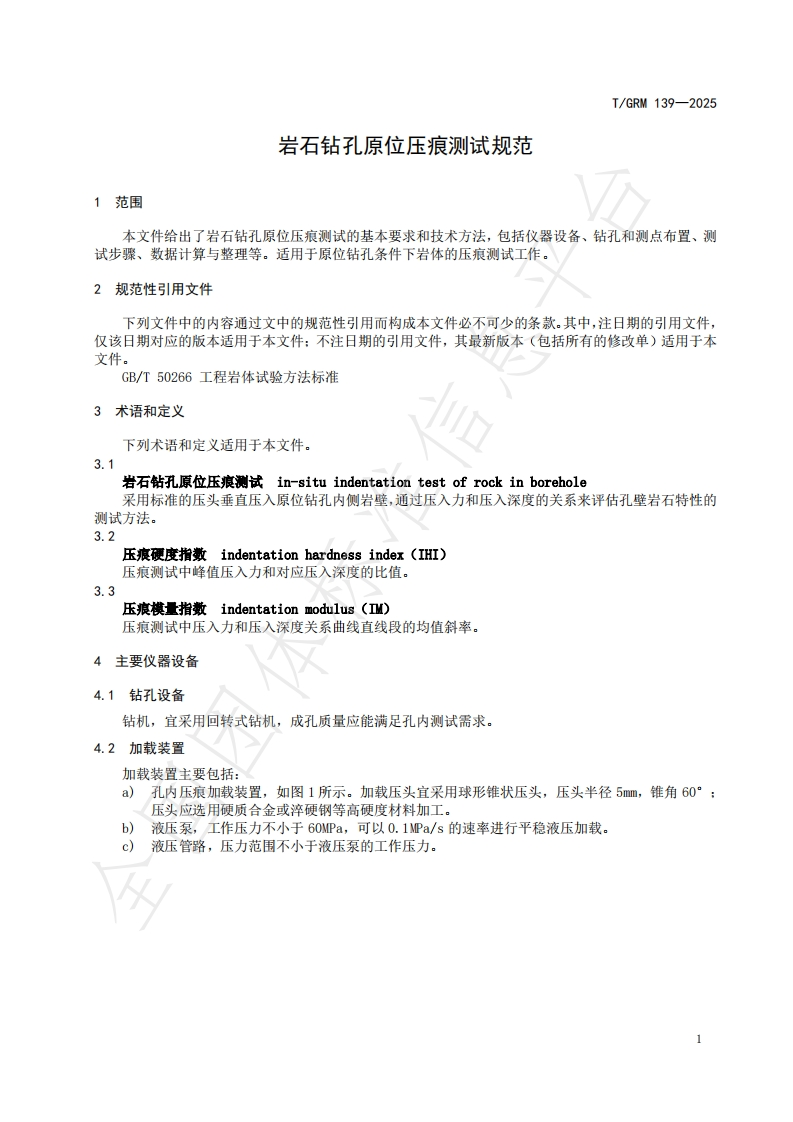 岩石钻孔原位压痕测试规范Specificationforin-situindentationtestofrockinborehole348072@abc昨天发布关注私信0.50MB8页048岩石钻孔原位压痕测试规范Specificationforin-situindentationtestofrockinborehole此内容为付费资源,请付费后查看¥19¥23黄金会员免费钻石会员免费立即购买您当前未登录!建议登陆后购买,可保存购买订单付费资源 第1页 / 共8页 第2页 / 共8页 第3页 / 共8页 第4页 / 共8页 第5页 / 共8页 试读已结束,还剩3页,您可下载完整版后进行离线阅读 THE END标准规范 文本预览 ICS73.010CCS D80I/GRM中关村绿色矿山产业联盟团体标准T/GRM139-2025岩石钻孔原位压痕测试规范Specification for in-situ indentation test ofrock in borehole国团体2025-08-11发布2025-08-11实施中关村绿色矿山产业联盟发布 查看更多 收起部分 喜欢就支持一下吧收藏