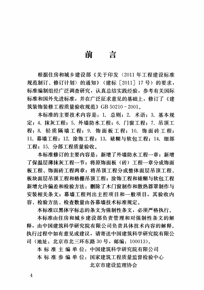 建筑装饰装修工程质量348072@abc23小时前发布关注私信5.85MB136页038建筑装饰装修工程质量此内容为付费资源,请付费后查看¥19¥23黄金会员免费钻石会员免费立即购买您当前未登录!建议登陆后购买,可保存购买订单付费资源 第1页 / 共136页 第2页 / 共136页 第3页 / 共136页 第4页 / 共136页 第5页 / 共136页 试读已结束,还剩131页,您可下载完整版后进行离线阅读 THE END标准规范 文本预览 UDC中华人民共和国国家标准PGB50210-2018建筑装饰装修工程质量验收标准Standard for construction quality acceptanceof building decoration2018-02-08发布2018-09-01实施中华人民共和国住房和城乡建设部联合发布中华人民共和国国家质量监督检验检疫总局 查看更多 收起部分 喜欢就支持一下吧收藏