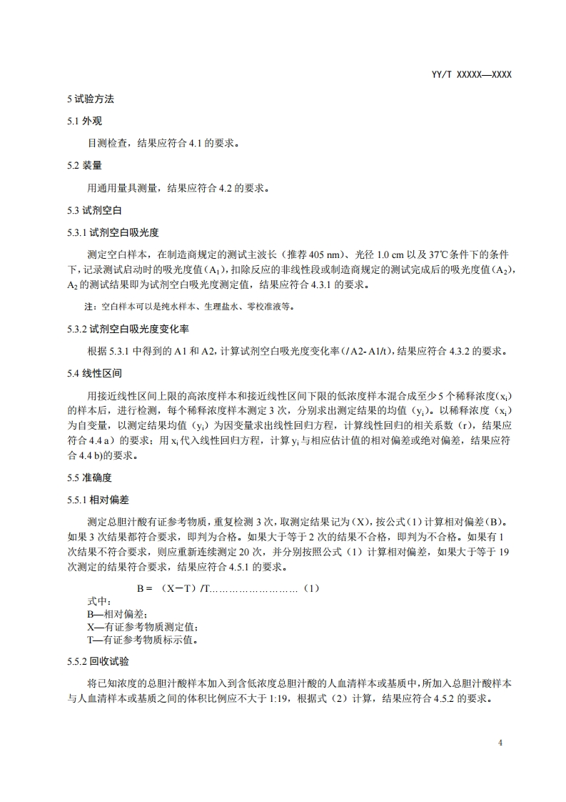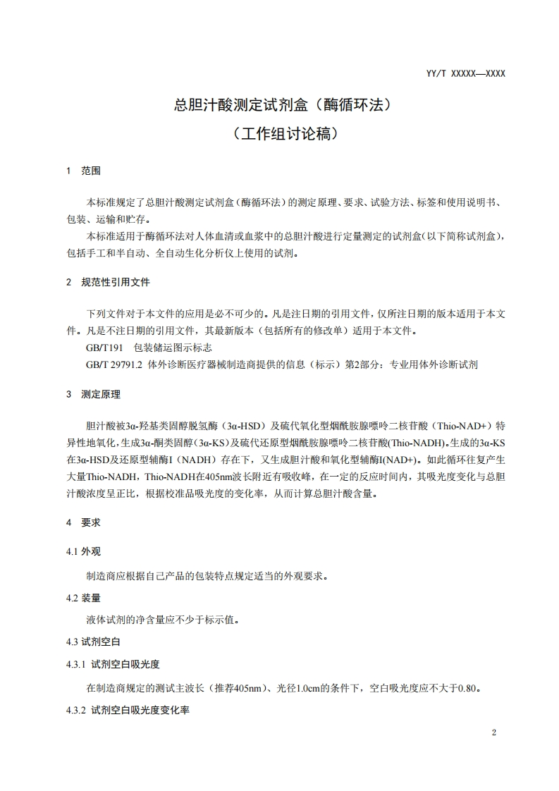 总胆汁酸测定试剂盒(酶循环法)Totalbileacidsassaykit(Enzymecyclemethod)(征求意见稿)348072@abc昨天发布关注私信0.28MB8页024总胆汁酸测定试剂盒(酶循环法)Totalbileacidsassaykit(Enzymecyclemethod)(征求意见稿)此内容为付费资源,请付费后查看¥19¥23黄金会员免费钻石会员免费立即购买您当前未登录!建议登陆后购买,可保存购买订单付费资源 第1页 / 共8页 第2页 / 共8页 第3页 / 共8页 第4页 / 共8页 第5页 / 共8页 试读已结束,还剩3页,您可下载完整版后进行离线阅读 THE END标准规范 文本预览 1CS11.040.40C40中华人民共和国医药行业标准YY/TXXXXXXXXX总胆汁酸测定试剂盒(酶循环法)Total bile acids assay kit (Enzyme cycle method)(征求意见稿)XXXX-XX-XX发布XXXX-XX-XX实施国家药品监督管理局发布 查看更多 收起部分 喜欢就支持一下吧收藏