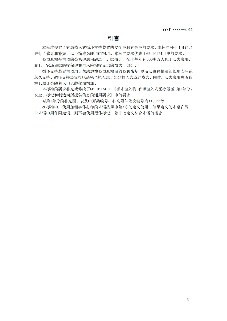 ICS11.040.40035YY中华人民共和国医药行业标准YY/T XXXX-20XX手术植入物有源植入式医疗器械第5部分:循环支持器械Implants for surgery Active implantable medical devices Part 5:Circulatory support deviceIS014708-5:2020,M0D征求意见稿××××一××一××发布××××一××一××实施国家药品监督管理局发布
