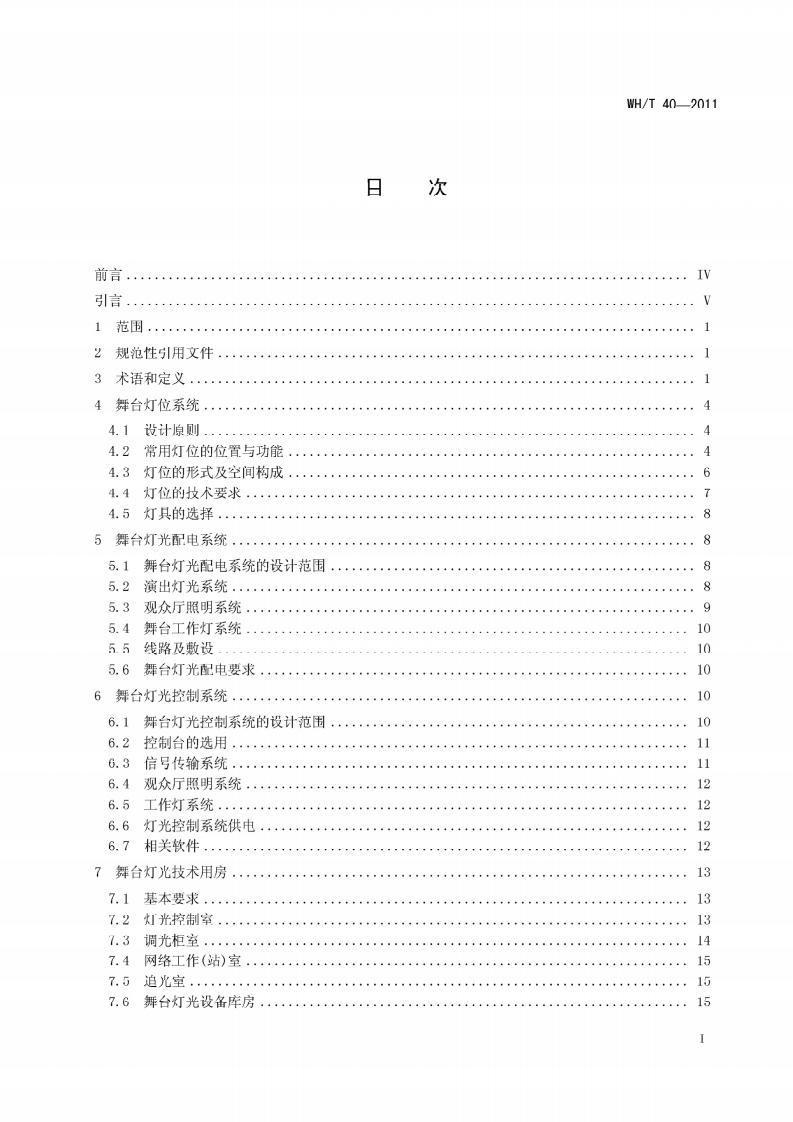 WH_T40-2011舞台灯光系统工艺设计导则348072@abc4个月前发布关注私信13.59MB25页037WH_T40-2011舞台灯光系统工艺设计导则此内容为付费资源,请付费后查看¥17¥32黄金会员免费钻石会员免费立即购买您当前未登录!建议登陆后购买,可保存购买订单付费资源 第1页 / 共25页 第2页 / 共25页 试读已结束,还剩23页,您可下载完整版后进行离线阅读 THE END标准规范 文本预览 ICS91.160.10P33备案号:31599-2011E中华人民共和国文化行业标准WH/T402011舞台灯光系统工艺设计导则Design Guideline for Stage Lighting System2011-03-23发布2011-06-01实施中华人民共和国文化部发布 查看更多 收起部分 喜欢就支持一下吧收藏