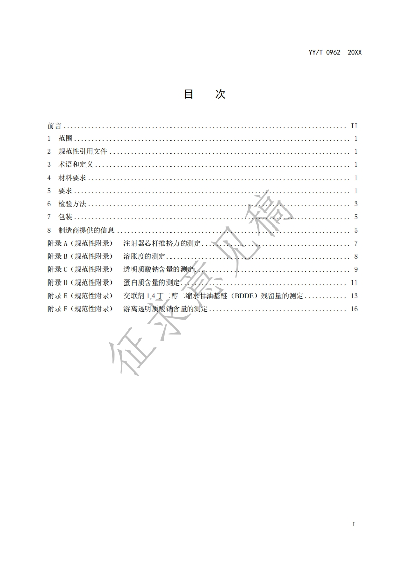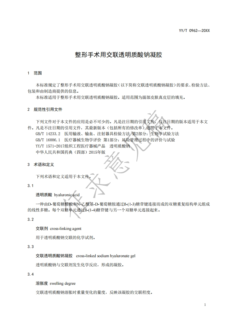 整形手术用交联透明质酸钠凝胶Cross-linkedsodiumhyaluronategelforplasticsurgery(征求意见稿)348072@abc前天发布关注私信0.73MB21页025整形手术用交联透明质酸钠凝胶Cross-linkedsodiumhyaluronategelforplasticsurgery(征求意见稿)此内容为付费资源,请付费后查看¥19¥23黄金会员免费钻石会员免费立即购买您当前未登录!建议登陆后购买,可保存购买订单付费资源 第1页 / 共21页 第2页 / 共21页 第3页 / 共21页 第4页 / 共21页 第5页 / 共21页 试读已结束,还剩16页,您可下载完整版后进行离线阅读 THE END标准规范 文本预览 ICS11.040.40C45YY中华人民共和国医药行业标准YY/T 0962-20XX代替YY0962-2014整形手术用交联透明质酸钠凝胶Cross-linked sodium hyaluronate gel for plastic surgery在提交反馈意见时,请将您知道的相关专利连同支持性文件一并附上。20XX-XX-XX发布20XX-XX-XX实施国家药品监督管理局发布 查看更多 收起部分 喜欢就支持一下吧收藏