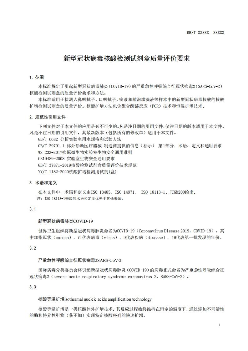 新型冠状病毒核酸检测试剂盒质量评价要驼(征求意见稿)348072@abc前天发布关注私信0.49MB11页041新型冠状病毒核酸检测试剂盒质量评价要驼(征求意见稿)此内容为付费资源,请付费后查看¥19¥23黄金会员免费钻石会员免费立即购买您当前未登录!建议登陆后购买,可保存购买订单付费资源 第1页 / 共11页 第2页 / 共11页 第3页 / 共11页 第4页 / 共11页 第5页 / 共11页 试读已结束,还剩6页,您可下载完整版后进行离线阅读 THE END标准规范 文本预览 ICS中华人民共和国国GB/T XXXXX-XXXXX新型冠状病毒核酸检测试剂盒质量评价要求(征求意见稿)×××x-×X-××发布××××-×X-X×实施国家市场监督管理总局发布中国国家标准化管理委员会 查看更多 收起部分 喜欢就支持一下吧收藏
