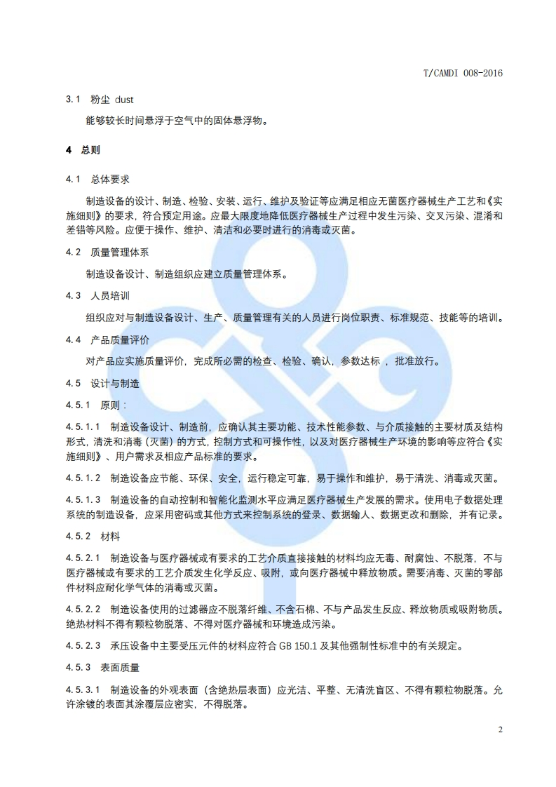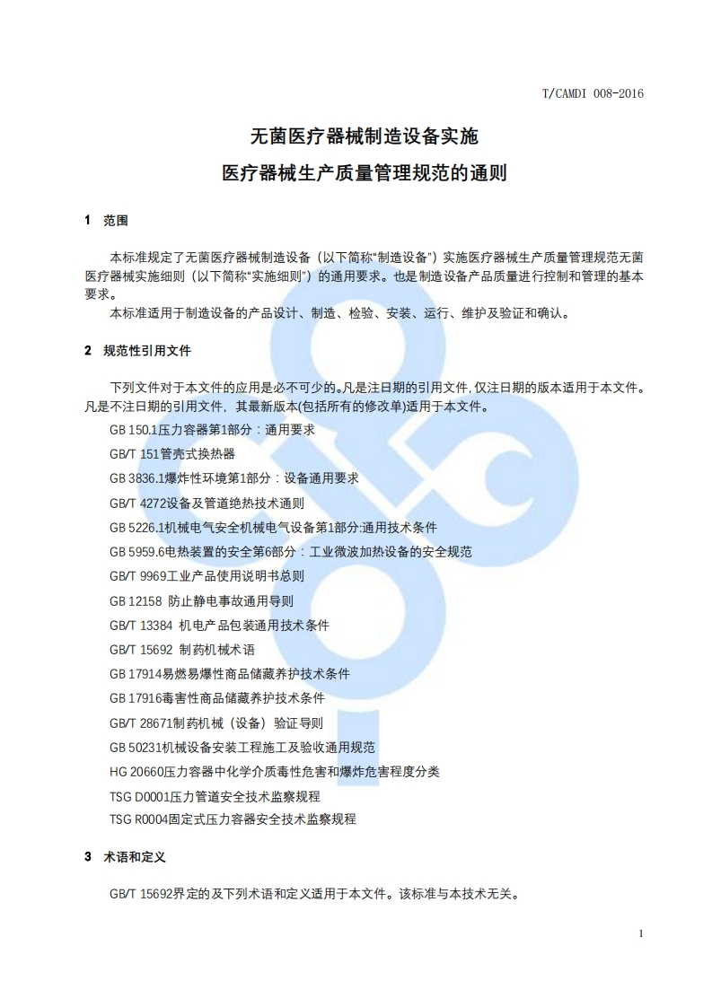 无菌医疗器械制造设备实施医疗器械生产质量管理规范的通则348072@abc前天发布关注私信0.51MB8页024无菌医疗器械制造设备实施医疗器械生产质量管理规范的通则此内容为付费资源,请付费后查看¥19¥23黄金会员免费钻石会员免费立即购买您当前未登录!建议登陆后购买,可保存购买订单付费资源 第1页 / 共8页 第2页 / 共8页 第3页 / 共8页 第4页 / 共8页 第5页 / 共8页 试读已结束,还剩3页,您可下载完整版后进行离线阅读 THE END标准规范 文本预览 ICS号:11.020中国医疗器械行业协会团体标准T/CAMD I008-2016无菌医疗器械制造设备实施医疗器械生产质量管理规范的通则2016-12-22发布2017-07-01实施中国医疗器械行业协会发布 查看更多 收起部分 喜欢就支持一下吧收藏