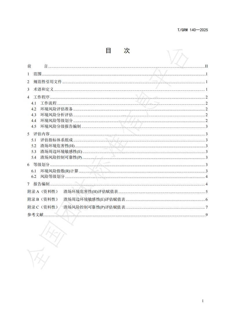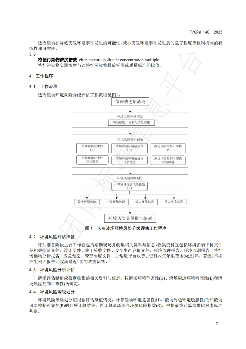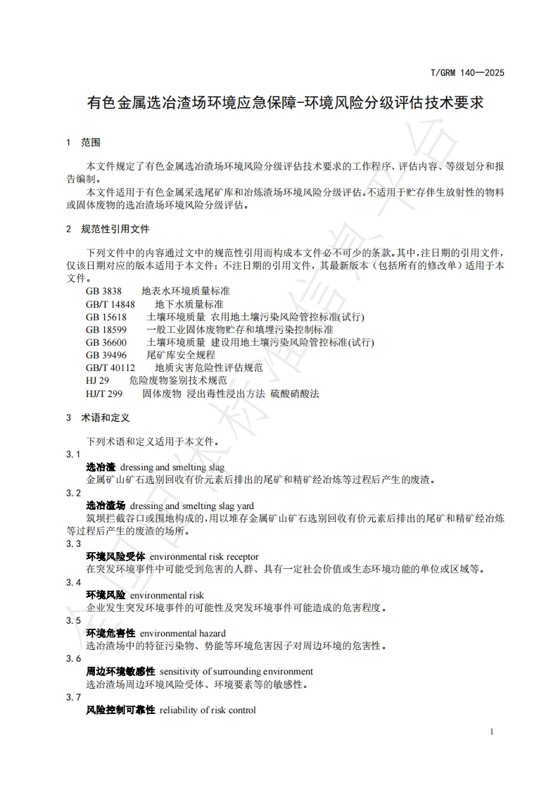 ICS13.020CCS Z06I/GRM中关村绿色矿山产业联盟团体标准T/GRM140-2025有色金属选冶渣场环境应急保障-环境风险分级评估技术要求Environmental emergency support of nonferrous metal dressing and smelting slagyard-technical requirements for environmental risk grading assessment国团2025-08-26发布2025-08-26实施中关村绿色矿山产业联盟发布