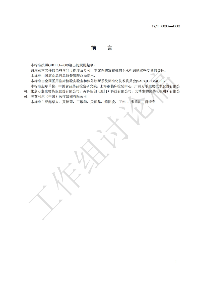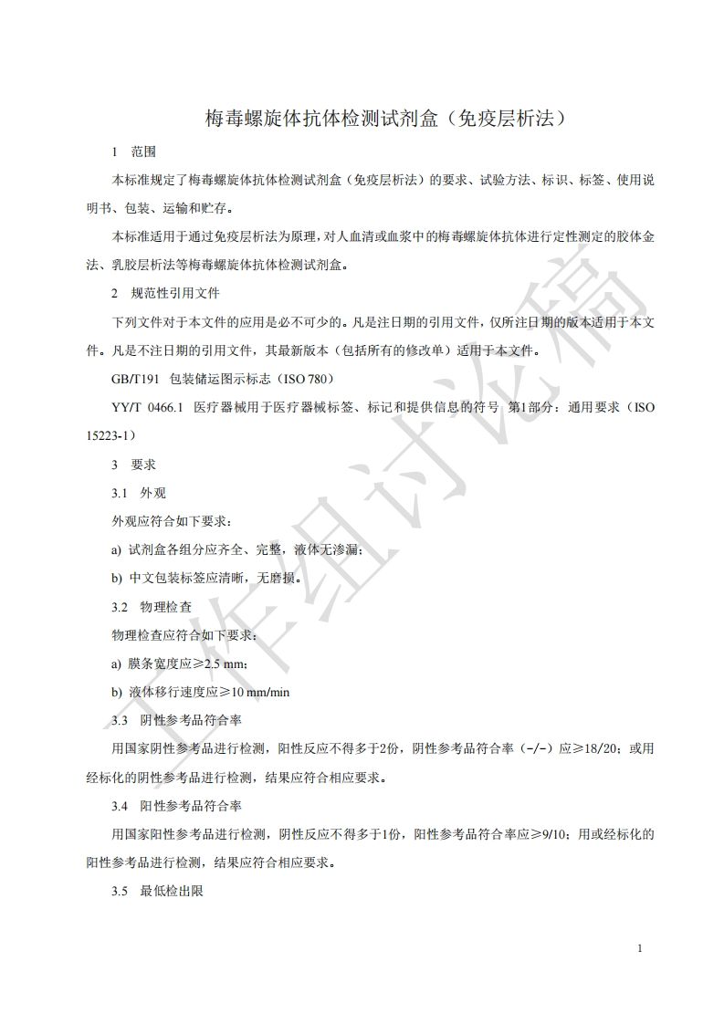 每毒螺旋体抗体检测试剂盒(免疫层析法ГreponemaPallidumAntibodiesDetectionKit(immunochromatographicmethod)(征求意见稿)348072@abc昨天发布关注私信0.31MB9页048每毒螺旋体抗体检测试剂盒(免疫层析法ГreponemaPallidumAntibodiesDetectionKit(immunochromatographicmethod)(征求意见稿)此内容为付费资源,请付费后查看¥19¥23黄金会员免费钻石会员免费立即购买您当前未登录!建议登陆后购买,可保存购买订单付费资源 第1页 / 共9页 第2页 / 共9页 第3页 / 共9页 第4页 / 共9页 第5页 / 共9页 试读已结束,还剩4页,您可下载完整版后进行离线阅读 THE END标准规范 文本预览 ICS11.100C44中华人民共和国医药行业标准YY/TXXXXXXXXX梅毒螺旋体抗体检测试剂盒(免疫层析法)Treponema Pallidum Antibodies Detection Kit (immunochromatographic method)(征求意见稿)XXXX-XX-XX发布XXXX-XX-XX实施国家药品监督管理局发布 查看更多 收起部分 喜欢就支持一下吧收藏