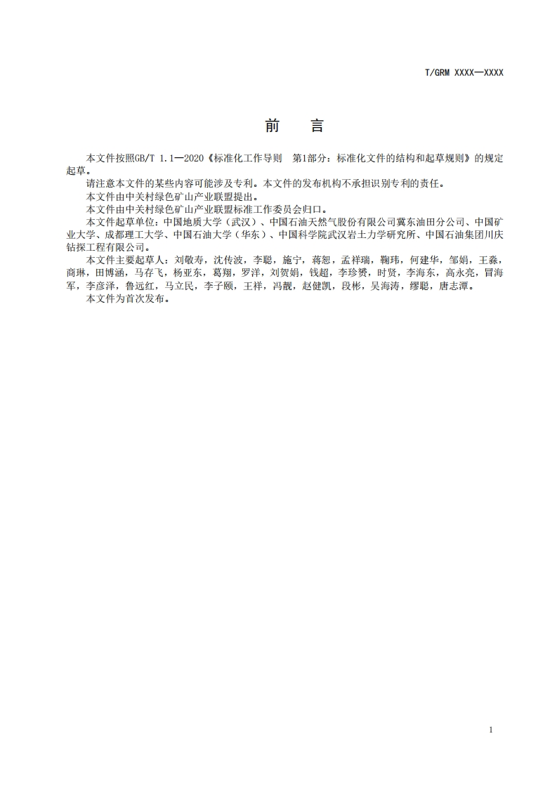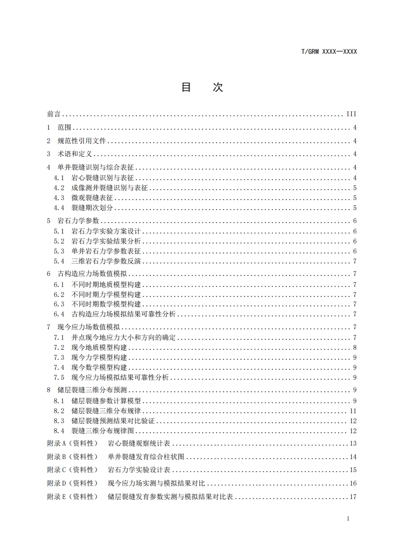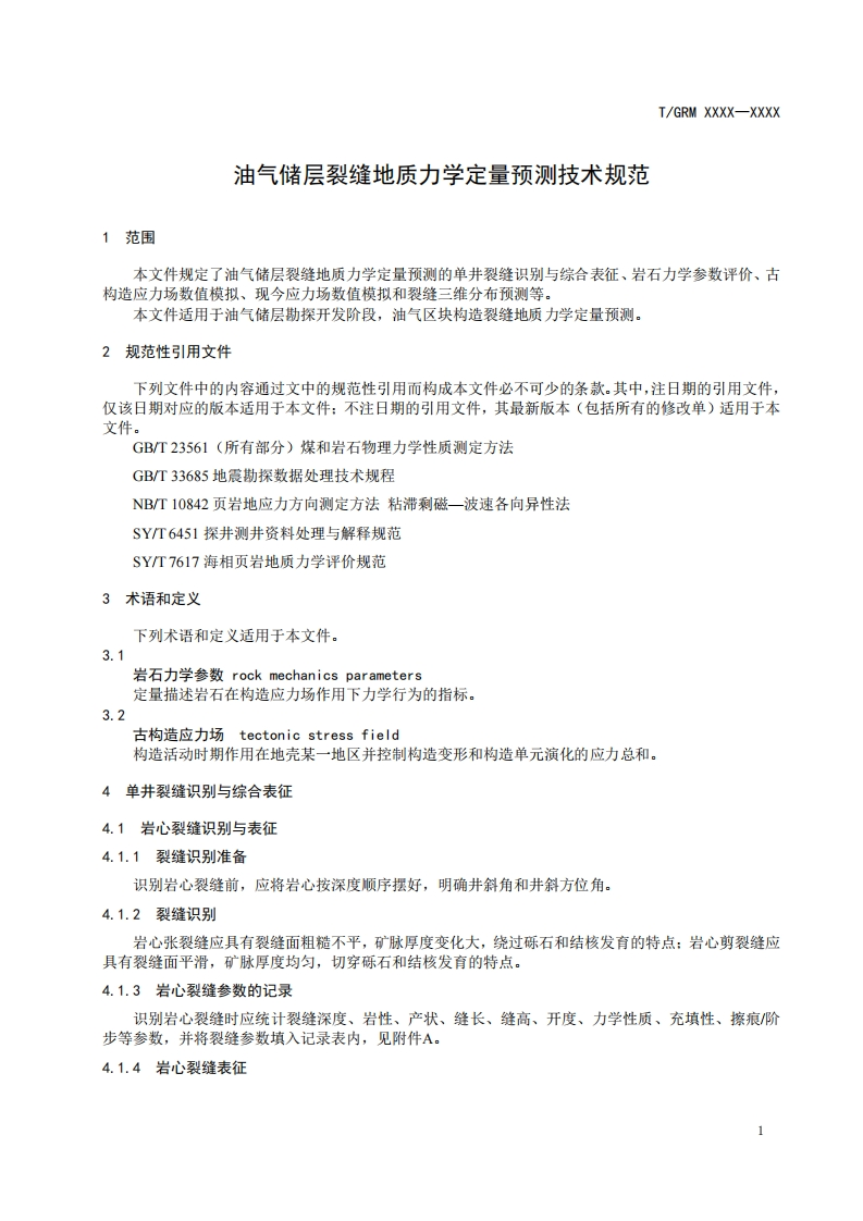 ICS点击此处添加ICS号CCS点击此处添加CCS号I/GRM中关村绿色矿山产业联盟团体标准T/GRM XXXX-XXXX油气储层裂缝地质力学定量预测技术规范Technical specification for geomechanical quantitative prediction of fractures in oiland gas reserviorsXXXX-Xx-XX发布XXXX-Xx-XX实施中关村绿色矿山产业联盟发布