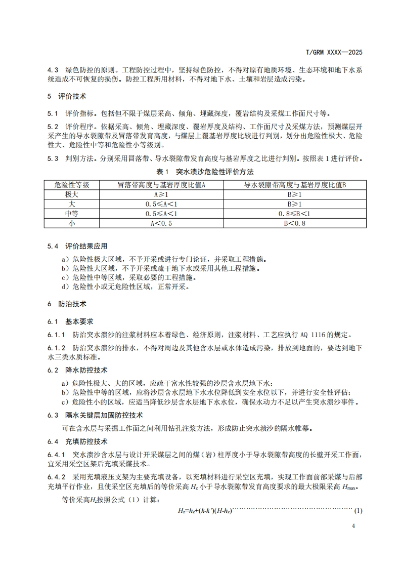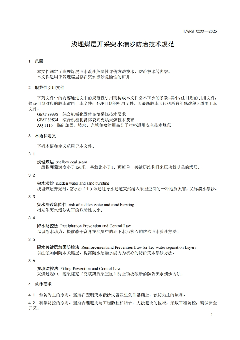 ICS13.020.99CCS Z10/39IGRM中关村绿色矿山产业联盟团体标准T/GRM XXXX-2025浅埋煤层开采突水溃沙防治技术规范Technical specifications for prevention and control of water and sand inrush inshallow coal seam mining(征求意见稿)2025-*-**发布2025-*-*实施中关村绿色矿山产业联盟发布