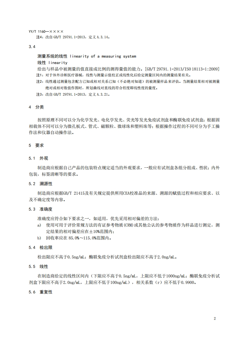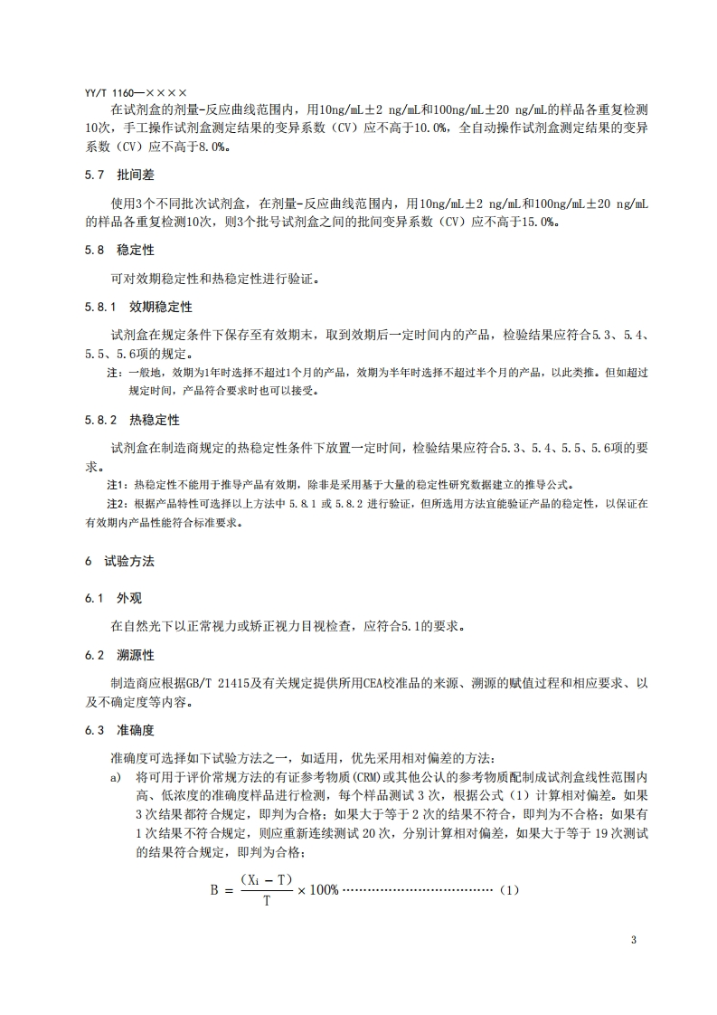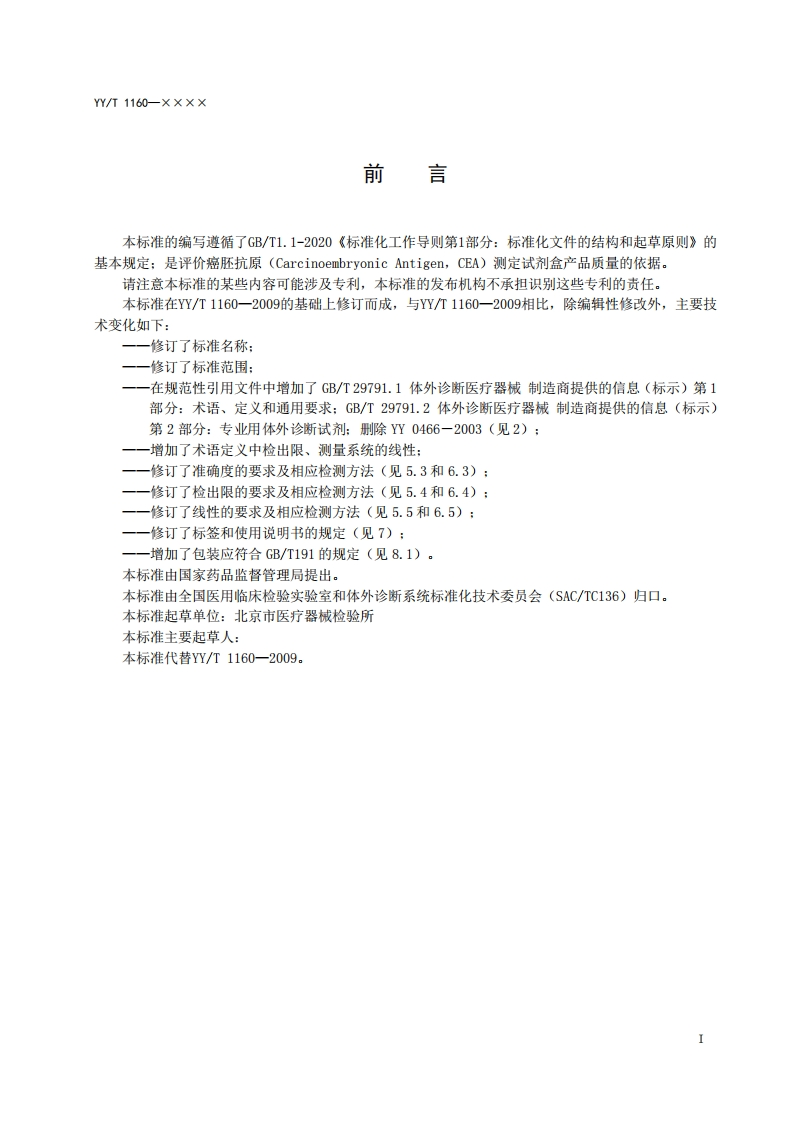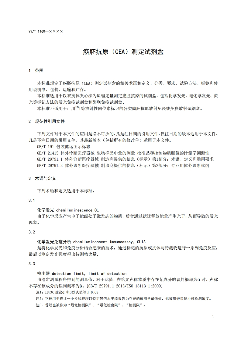 测定试剂盒癌胚抗原(CEA)Carcinoembryonicantigentestingkit征求意见稿)348072@abc15小时前发布关注私信0.26MB8页042测定试剂盒癌胚抗原(CEA)Carcinoembryonicantigentestingkit征求意见稿)此内容为付费资源,请付费后查看¥19¥23黄金会员免费钻石会员免费立即购买您当前未登录!建议登陆后购买,可保存购买订单付费资源 第1页 / 共8页 第2页 / 共8页 第3页 / 共8页 第4页 / 共8页 第5页 / 共8页 试读已结束,还剩3页,您可下载完整版后进行离线阅读 THE END标准规范 文本预览 ICS11.100C44YY中华人民共和国医药行业标准YYT1160一××××代替YY/T1160-2009癌胚抗原(CEA)测定试剂盒Carcinoembryonic antigen testing kit(征求意见稿)××X-×X-××发布××××-×X-××实施国家药品监督管理局发布 查看更多 收起部分 喜欢就支持一下吧收藏