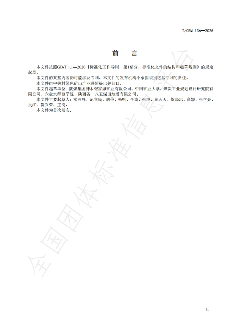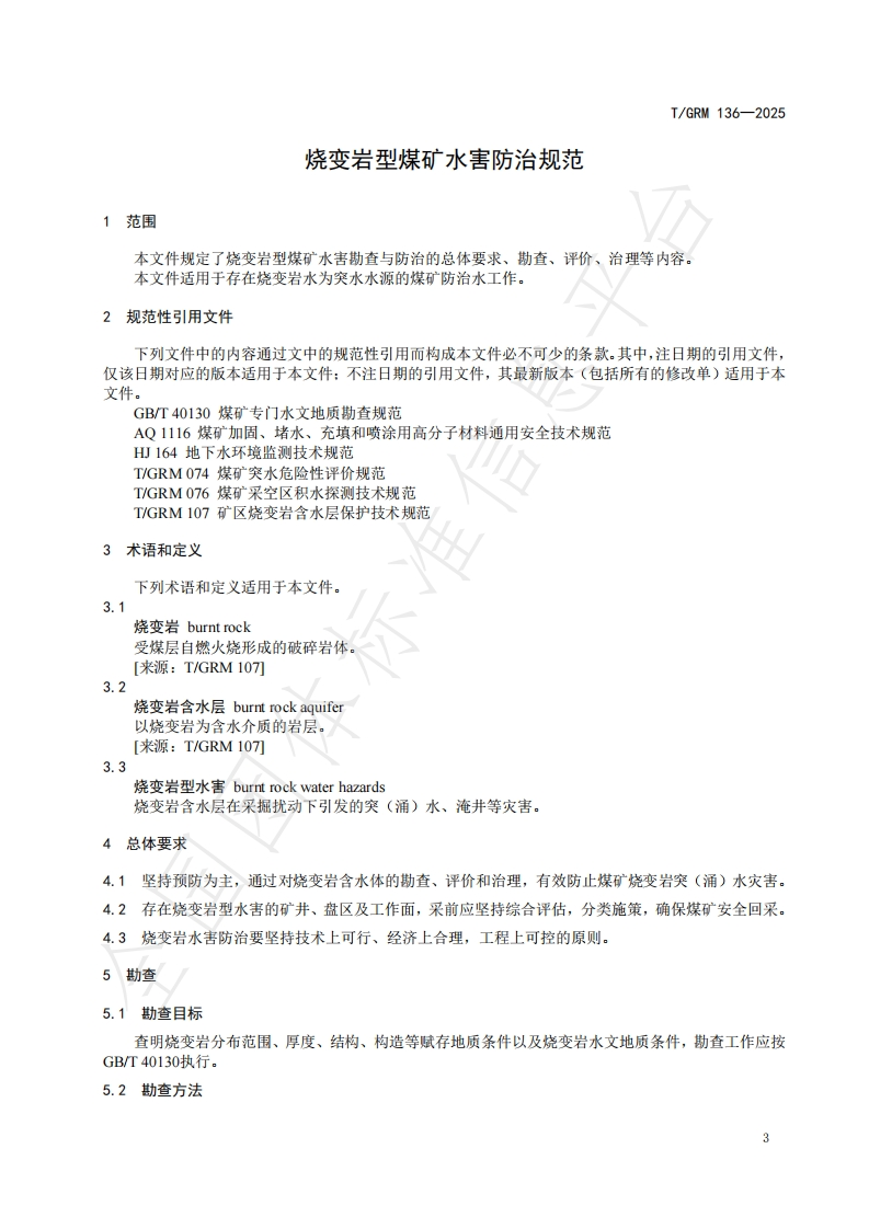 烧变岩型煤矿水害防治规范Technicalspecificationsforwaterhazardpreventioninburntrockcoalmines348072@abc17小时前发布关注私信0.30MB10页043烧变岩型煤矿水害防治规范Technicalspecificationsforwaterhazardpreventioninburntrockcoalmines此内容为付费资源,请付费后查看¥19¥23黄金会员免费钻石会员免费立即购买您当前未登录!建议登陆后购买,可保存购买订单付费资源 第1页 / 共10页 第2页 / 共10页 第3页 / 共10页 第4页 / 共10页 第5页 / 共10页 试读已结束,还剩5页,您可下载完整版后进行离线阅读 THE END标准规范 文本预览 ICS73.020CCS D 10/19IGRM中关村绿色矿山产业联盟团体标准T/GRM136—2025烧变岩型煤矿水害防治规范Technical specifications for water hazard prevention in burnt rock coal mines国团体2025-08-11发布2025-08-11实施中关村绿色矿山产业联盟发布 查看更多 收起部分 喜欢就支持一下吧收藏