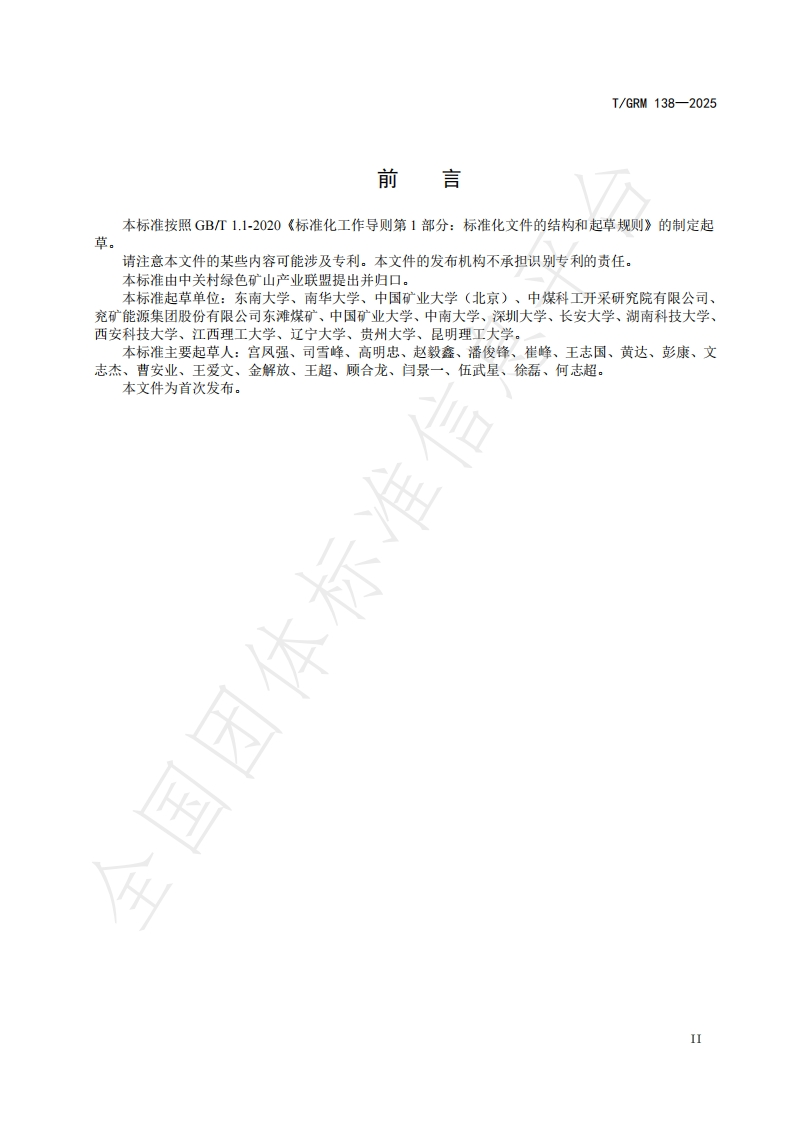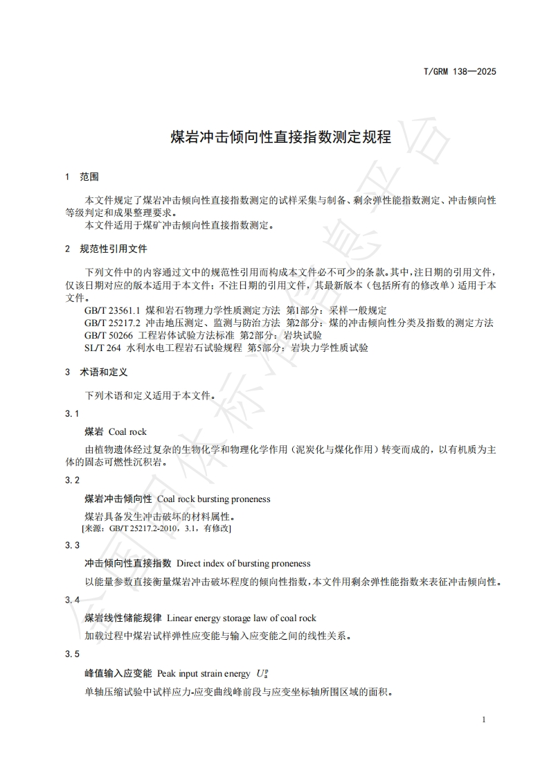 煤岩冲击倾向性直接指数测定规程Procedurefordeterminationofdirectindexofcoalrockburstingproneness348072@abc22小时前发布关注私信0.51MB10页042煤岩冲击倾向性直接指数测定规程Procedurefordeterminationofdirectindexofcoalrockburstingproneness此内容为付费资源,请付费后查看¥19¥23黄金会员免费钻石会员免费立即购买您当前未登录!建议登陆后购买,可保存购买订单付费资源 第1页 / 共10页 第2页 / 共10页 第3页 / 共10页 第4页 / 共10页 第5页 / 共10页 试读已结束,还剩5页,您可下载完整版后进行离线阅读 THE END标准规范 文本预览 ICS73.020CCS P70VGRM中关村绿色矿山产业联盟团体标准T/GRM138-2025煤岩冲击倾向性直接指数测定规程Procedure for determination of direct index of coal rock bursting proneness国团体标2025-08-11发布2025-08-11实施中关村绿色矿山产业联盟发布 查看更多 收起部分 喜欢就支持一下吧收藏