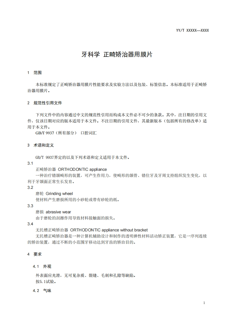 牙科学正畸矫治器用膜片(征求意见稿)请将你们发现的有关专利的内容和支持性文件随意见一并返回348072@abc昨天发布关注私信0.53MB13页047牙科学正畸矫治器用膜片(征求意见稿)请将你们发现的有关专利的内容和支持性文件随意见一并返回此内容为付费资源,请付费后查看¥19¥23黄金会员免费钻石会员免费立即购买您当前未登录!建议登陆后购买,可保存购买订单付费资源 第1页 / 共13页 第2页 / 共13页 第3页 / 共13页 第4页 / 共13页 第5页 / 共13页 试读已结束,还剩8页,您可下载完整版后进行离线阅读 THE END标准规范 文本预览 1CS11.060.10C33中华人民共和国医药行业标准YY/T XXXXX-XXXX牙科学正畸矫治器用膜片(征求意见稿)请将你们发现的有关专利的内容和支持性文件随意见一并返回XXXX-XX-XX发布XXXX-XX-XX实施国家药品监督管理局发布 查看更多 收起部分 喜欢就支持一下吧收藏