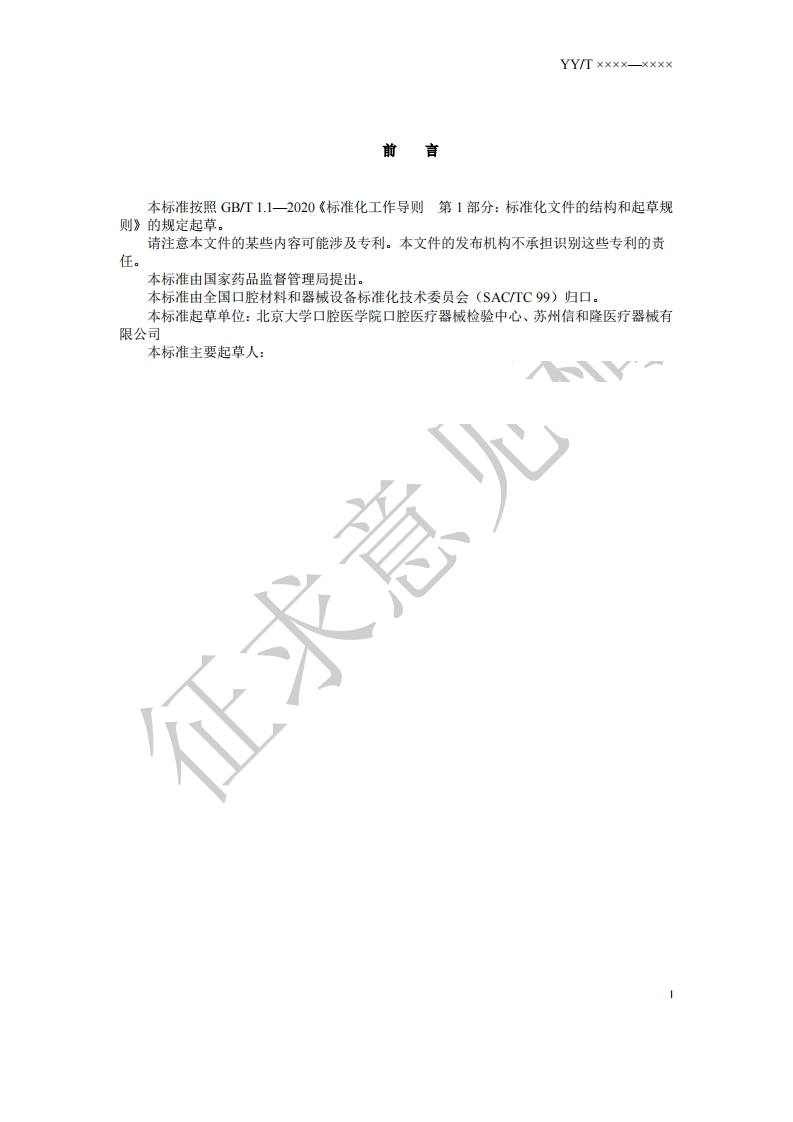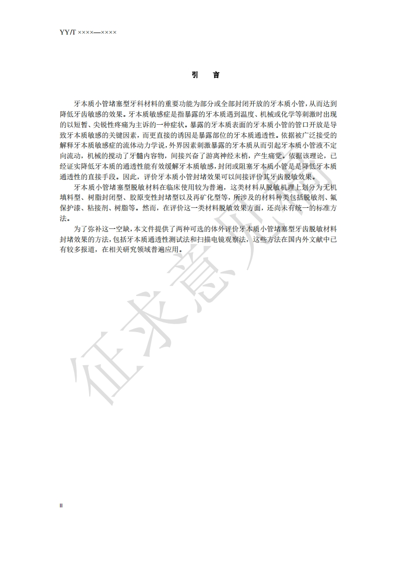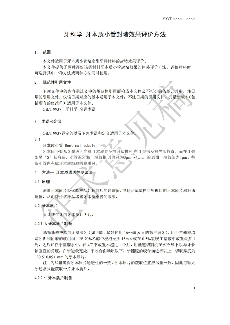 牙科学牙本质小管封堵效果评价方法Dentistry-Evaluationmethodsoftheocclusioneffectofdentinaltubules(征求意见稿)348072@abc昨天发布关注私信0.48MB10页036牙科学牙本质小管封堵效果评价方法Dentistry-Evaluationmethodsoftheocclusioneffectofdentinaltubules(征求意见稿)此内容为付费资源,请付费后查看¥19¥23黄金会员免费钻石会员免费立即购买您当前未登录!建议登陆后购买,可保存购买订单付费资源 第1页 / 共10页 第2页 / 共10页 第3页 / 共10页 第4页 / 共10页 第5页 / 共10页 试读已结束,还剩5页,您可下载完整版后进行离线阅读 THE END标准规范 文本预览 1CS11.060.10C33YY中华人民共和国医药行业标准YY/TXXXX-XXXX牙科学牙本质小管封堵效果评价方法Dentistry-Evaluation methods of the occlusion effect of dentinal tubules(征求意见稿)请将你们发现的有关专利的内容和支持性文件随意见一并返回×X××-×X-XX发布××××-××-××实施国家药品监督管理局发布 查看更多 收起部分 喜欢就支持一下吧收藏