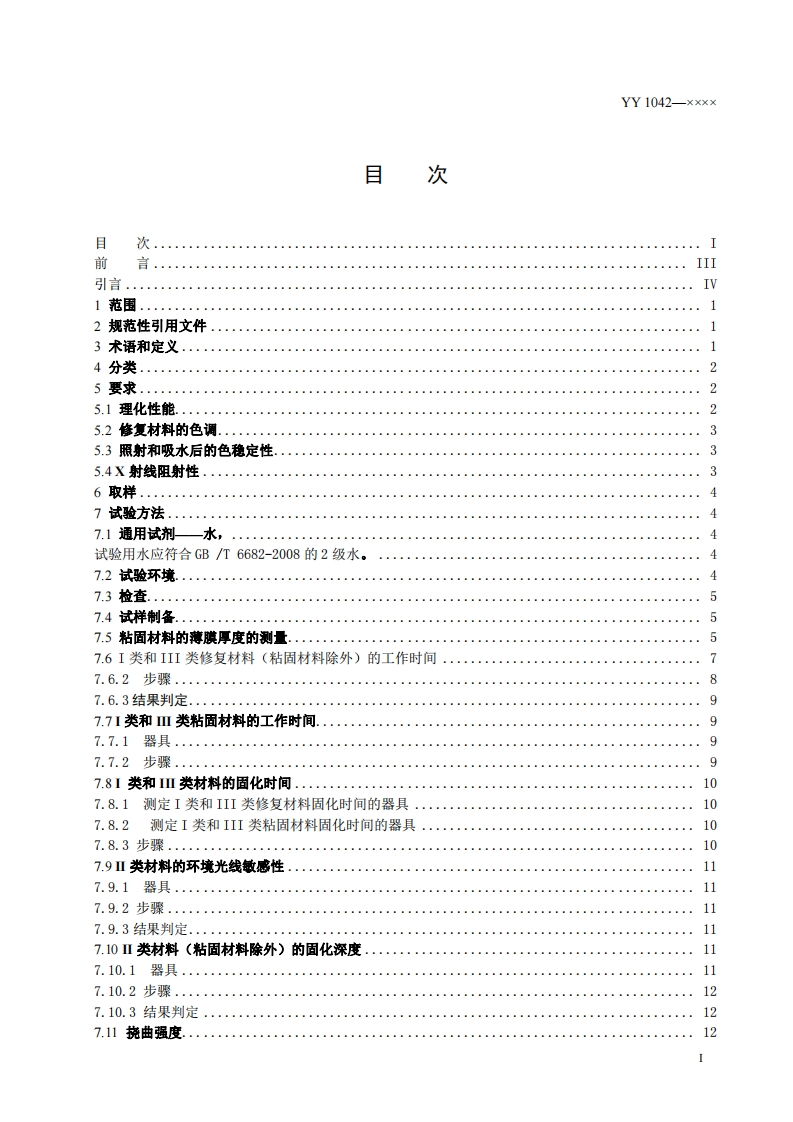 ICS11.060.10C33YY中华人民共和国医药行业标准YY1042-××××代替YY1042-2011牙科学聚合物基修复材料Dentistry -Polymer-based restorative materials(IS04049:2019,M0D)征求意见稿(本稿完成日期:2022-6-20)××××-××-××发布××××-××-××实施国家药品监督管理局发布