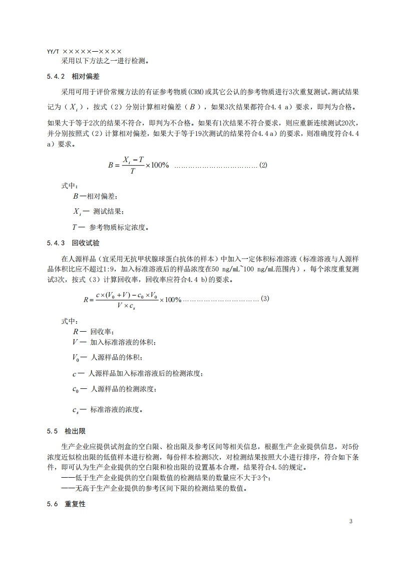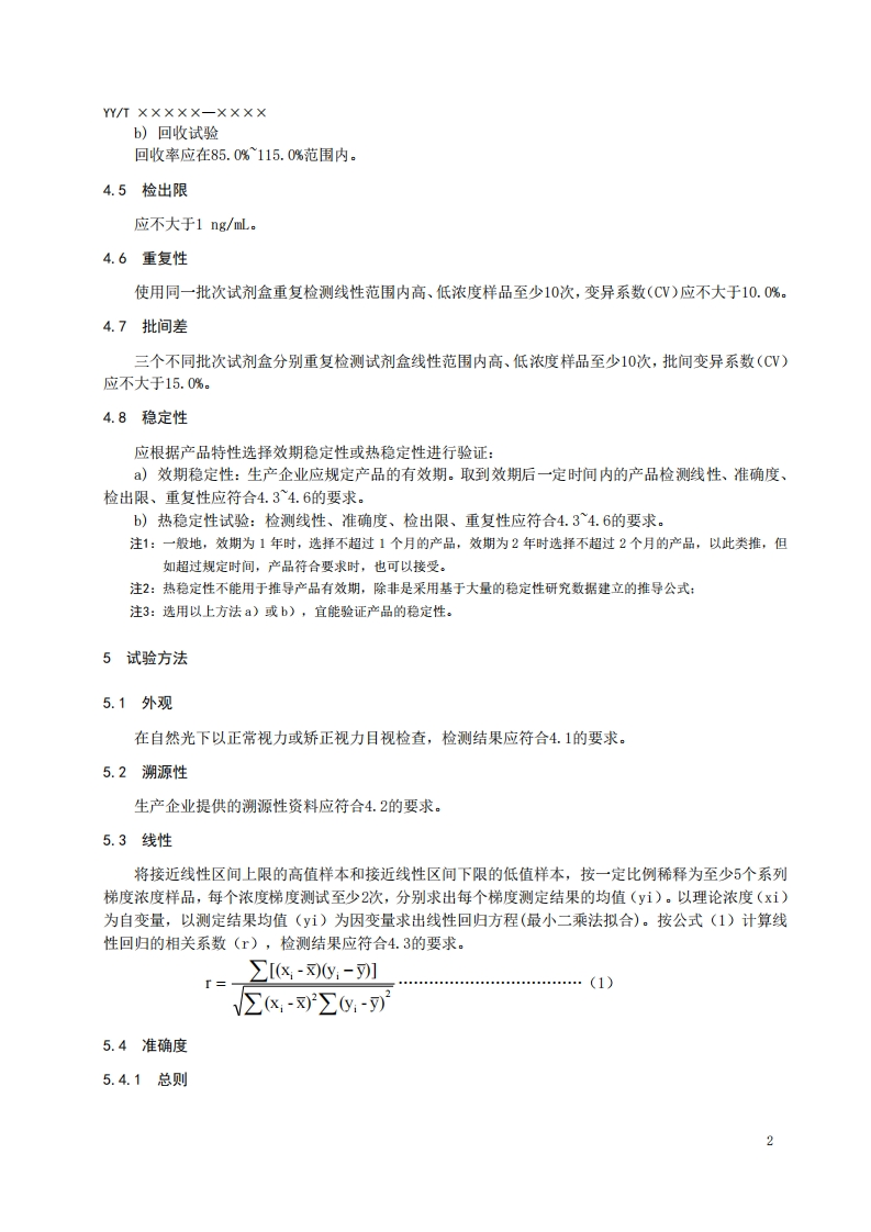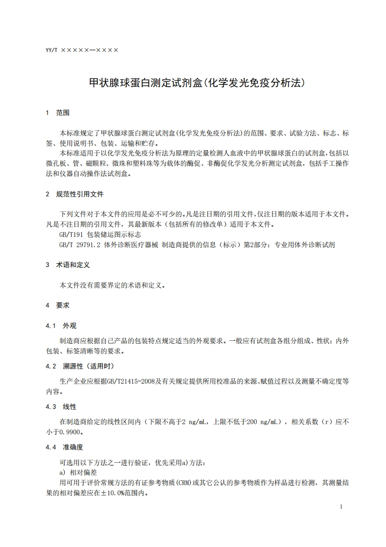状腺球蛋白测定试剂盒(化学发光免疫分析法)Thyroglobulintestingkit(Chemiuminescencemethod(征求意见稿)348072@abc昨天发布关注私信0.32MB7页020状腺球蛋白测定试剂盒(化学发光免疫分析法)Thyroglobulintestingkit(Chemiuminescencemethod(征求意见稿)此内容为付费资源,请付费后查看¥19¥23黄金会员免费钻石会员免费立即购买您当前未登录!建议登陆后购买,可保存购买订单付费资源 第1页 / 共7页 第2页 / 共7页 第3页 / 共7页 第4页 / 共7页 第5页 / 共7页 试读已结束,还剩2页,您可下载完整版后进行离线阅读 THE END标准规范 文本预览 ICS11.100C44YY中华人民共和国医药行业标准YY/TXXXXX一X×X×甲状腺球蛋白测定试剂盒(化学发光免疫分析法)Thyroglobulin testing kit Chemiluminescence method)(征求意见稿)××××-X×一××发布×××一×一×实施国家药品监督管理局发布 查看更多 收起部分 喜欢就支持一下吧收藏