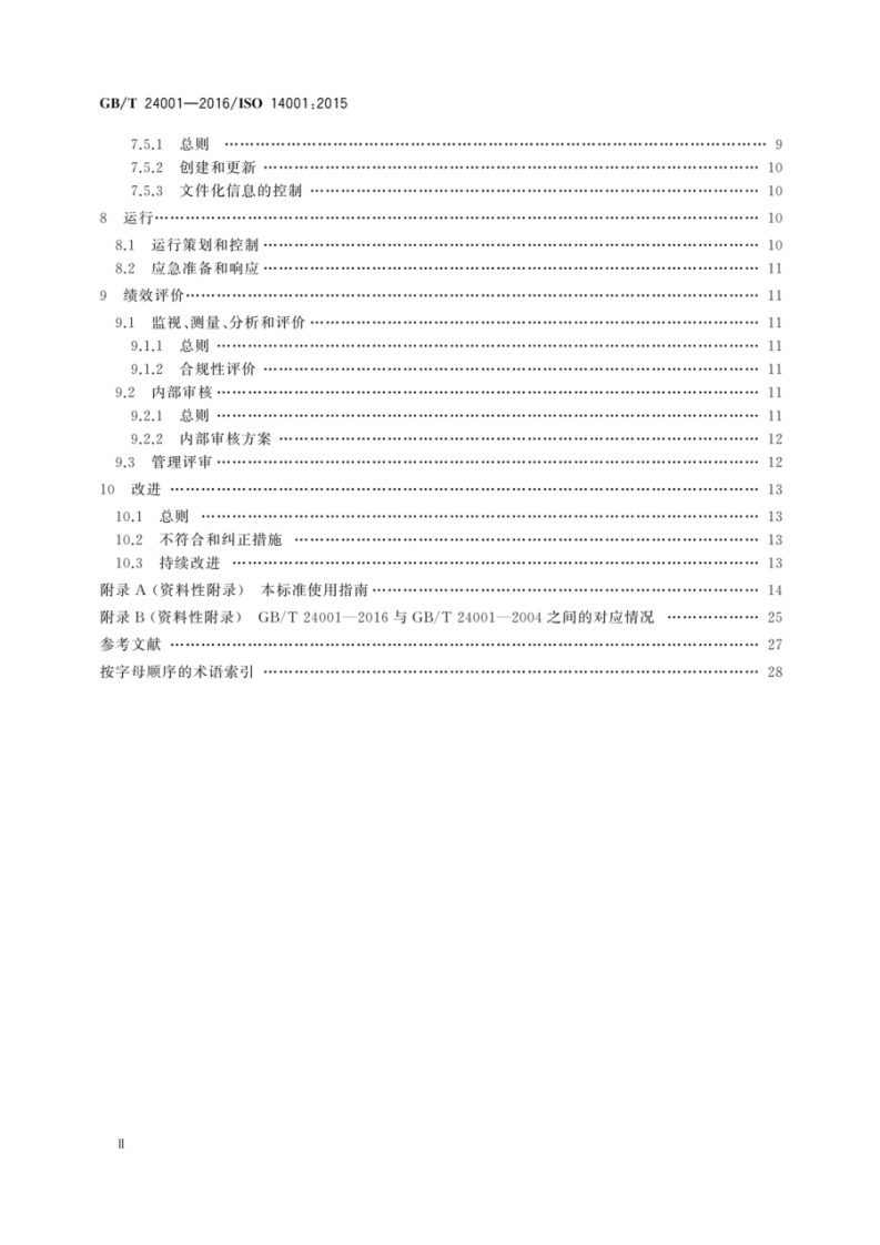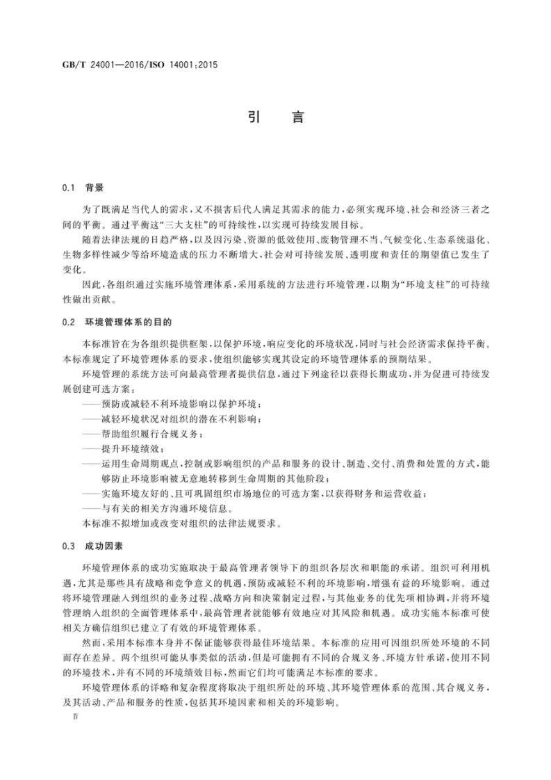 1CS13.020Z00B中华人民共和国国家标准GB/T24001-2016/IS014001:2015代替GB/T24001-2004环境管理体系要求及使用指南Environmental management systems-Requirements withguidance for use(ISO14001:2015,IDT)2016-10-13发布2017-05-01实施中华人民共和国国家质量监督检验检疫总局中国国家标准化管理委员会发布