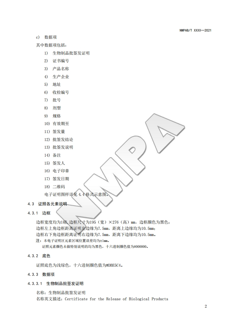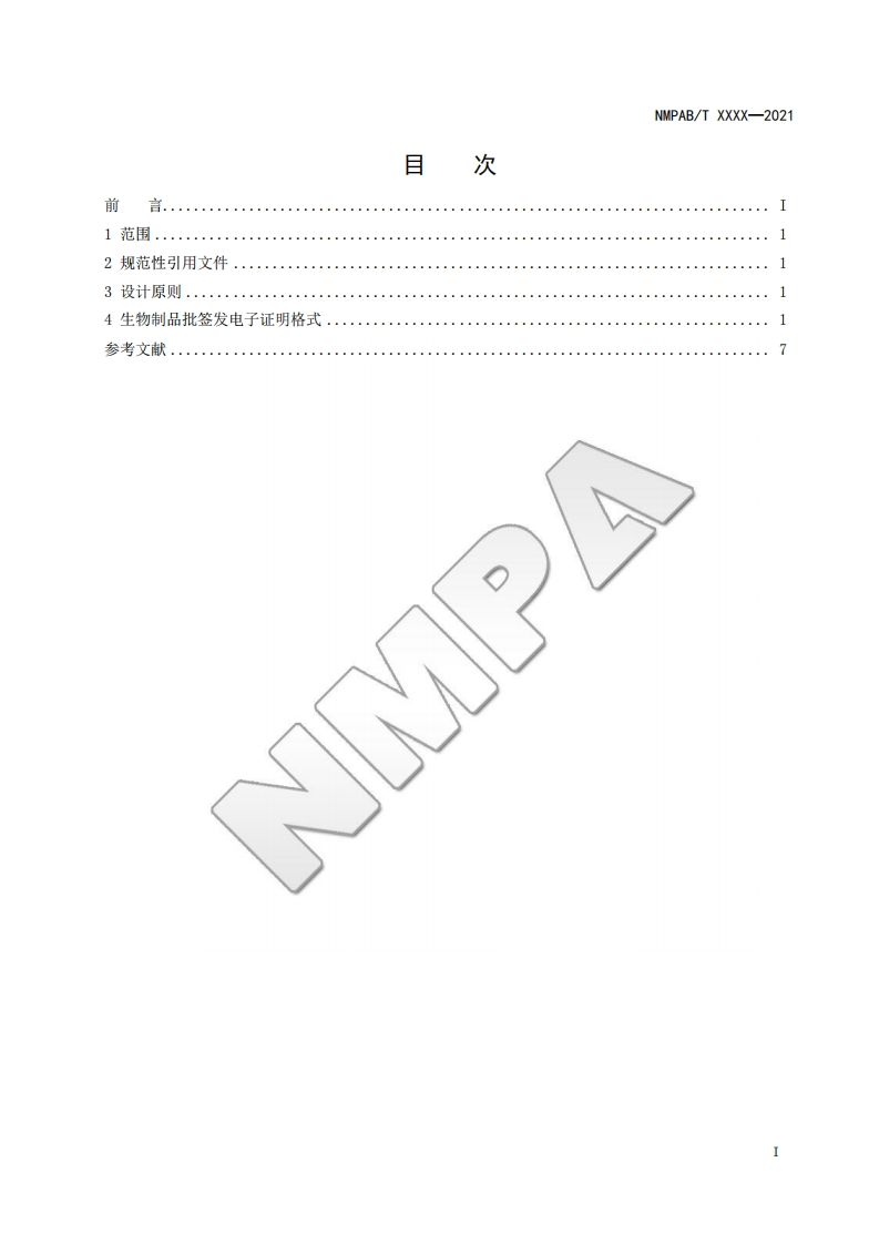 生物制品批签发电子证明格式Formsforelectroniccertificateofthereleaseofbiologicalproducts(征求意见稿)348072@abc前天发布关注私信0.90MB10页034生物制品批签发电子证明格式Formsforelectroniccertificateofthereleaseofbiologicalproducts(征求意见稿)此内容为付费资源,请付费后查看¥19¥23黄金会员免费钻石会员免费立即购买您当前未登录!建议登陆后购买,可保存购买订单付费资源 第1页 / 共10页 第2页 / 共10页 第3页 / 共10页 第4页 / 共10页 第5页 / 共10页 试读已结束,还剩5页,您可下载完整版后进行离线阅读 THE END标准规范 文本预览 NMPAB国家药品监督管理局信息化标准NMPAB/T xxxx-2021生物制品批签发电子证明格式Forms for electronic certificate of the release of biological products(征求意见稿)2021-XX-XX发布2021-XX-XX实施国家药品监督管理局发布 查看更多 收起部分 喜欢就支持一下吧收藏
