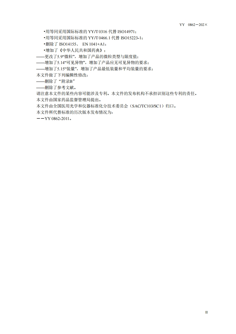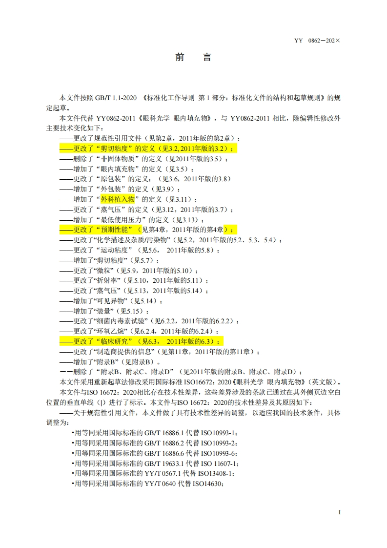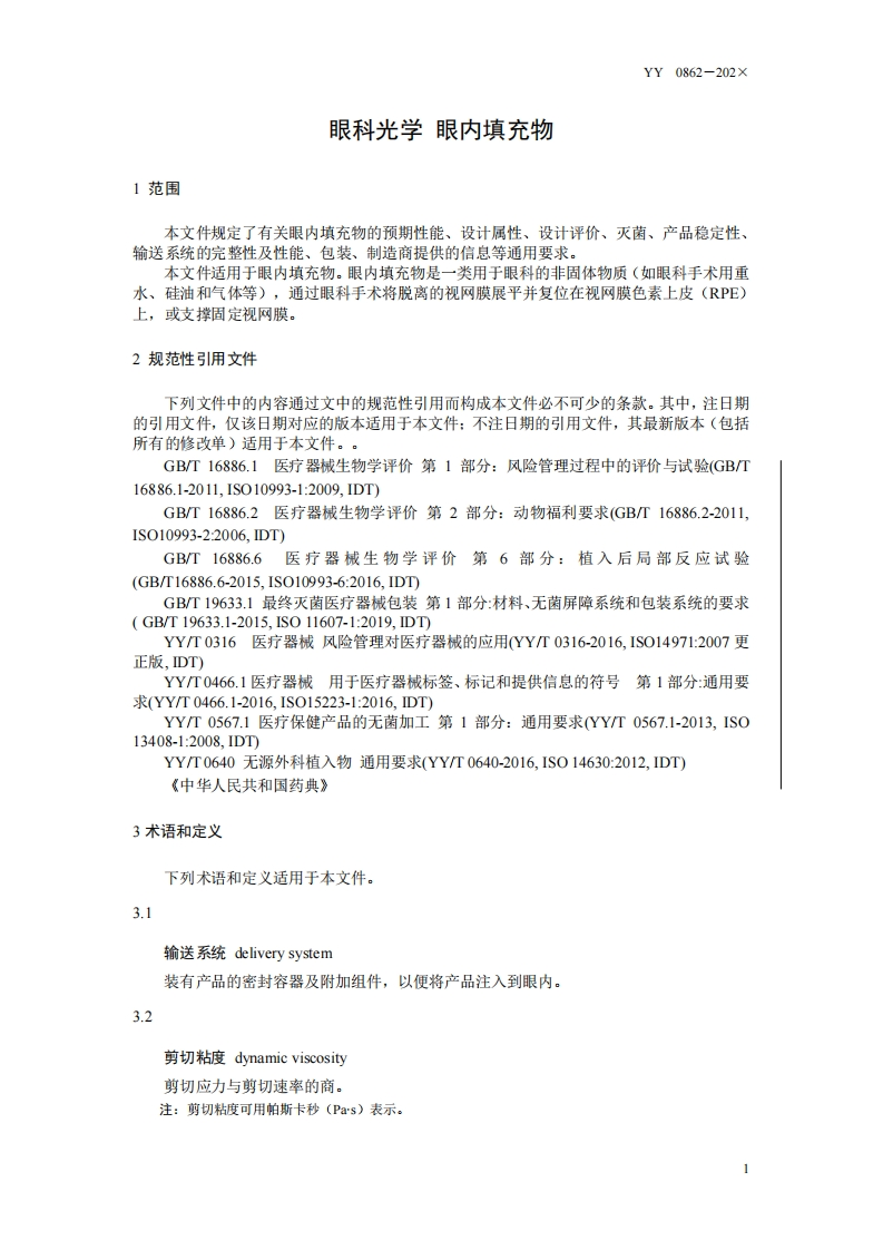 ICS11.040.70C40YY中华人民共和国医药行业标准YY0862-202×代替YY0862-2011眼科光学眼内填充物Ophthalmic Optics-Ocular endotamponades(ISO16672:2020,Ophthalmic implants-Ocular endotamponades,MOD)(送审稿)××X-××-××发布×××-××-×实施国家药品监督管理局发布