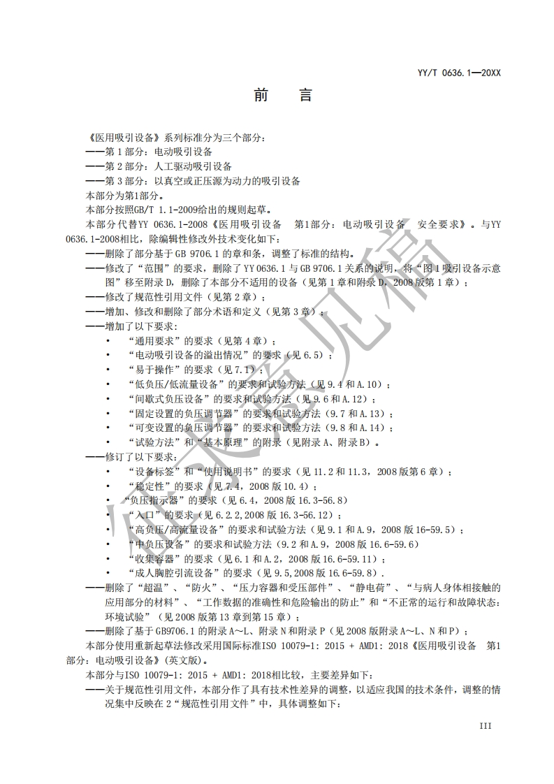 1CS11.040.10C46中华人民共和国医药行业标准YYT0636.1-20XX代替YY0636.1一2008医用吸引设备第1部分:电动吸引设备Medical suction equipment-Part 1:Electrically powered suction equipment(IS010079-1:2015,M0D)(征求意见稿)征20XX-XX-XX发布20XX-XX-XX实施国家药品监督管理局发布