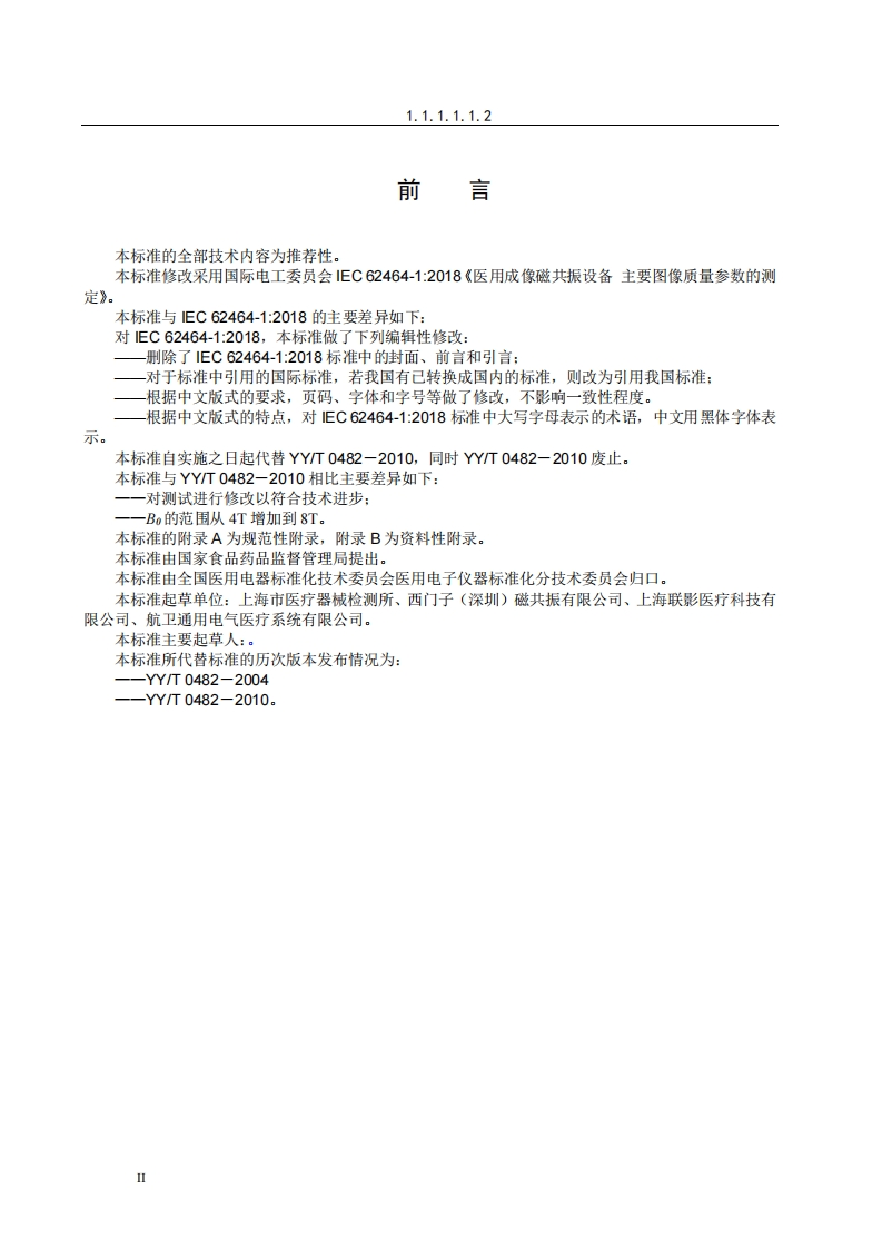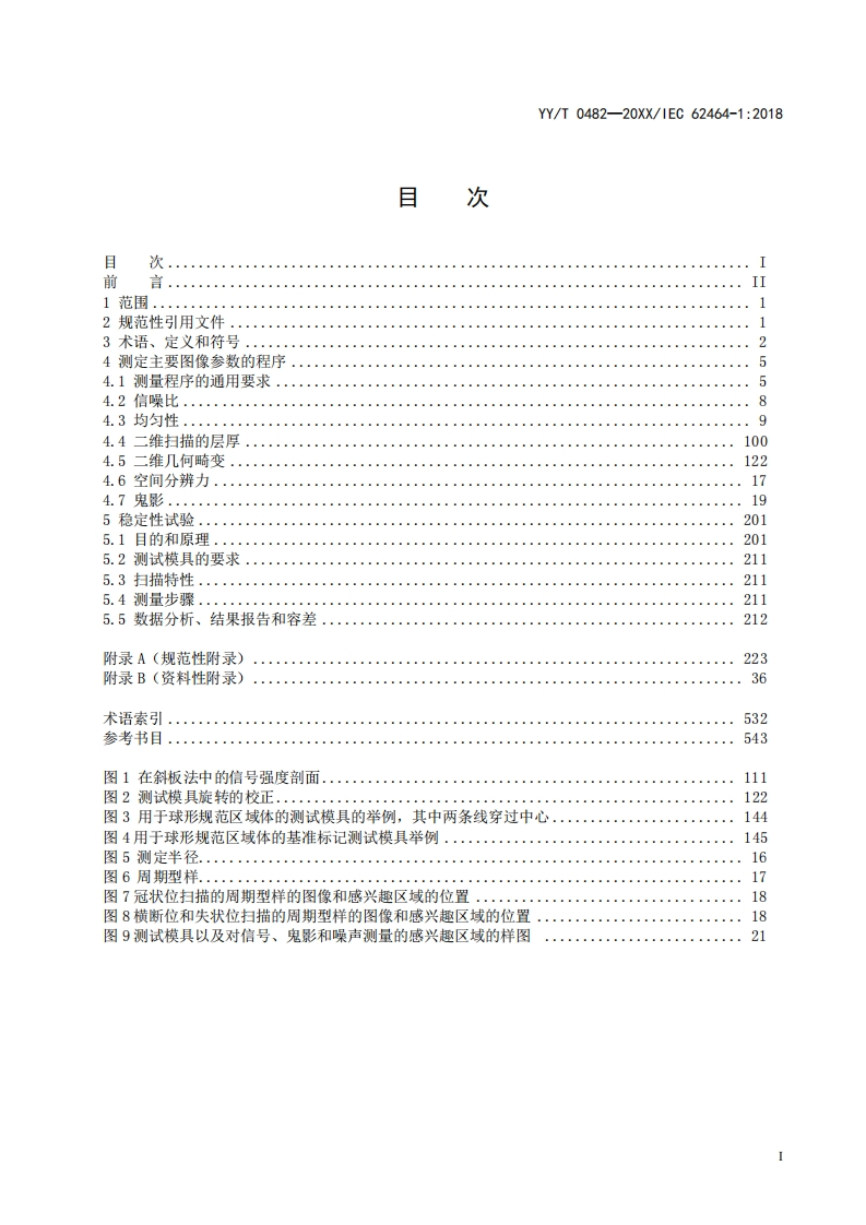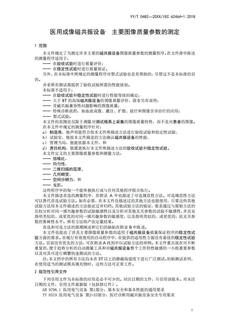 ICS11.040.50C39YY中华人民共和国医药行业标准YY/T0482-20XX/1EC62464-1:2018代替YY/T0482-2010医用成像磁共振设备主要图像质量参数的测定Magnetic resonance equipment for medical imaging -Part 1:Determination of essential image quality parameters(IEC62464-1:2018,M0D)20XX-××-××发布20XX-××-××实施国家药品监督管理局发布
