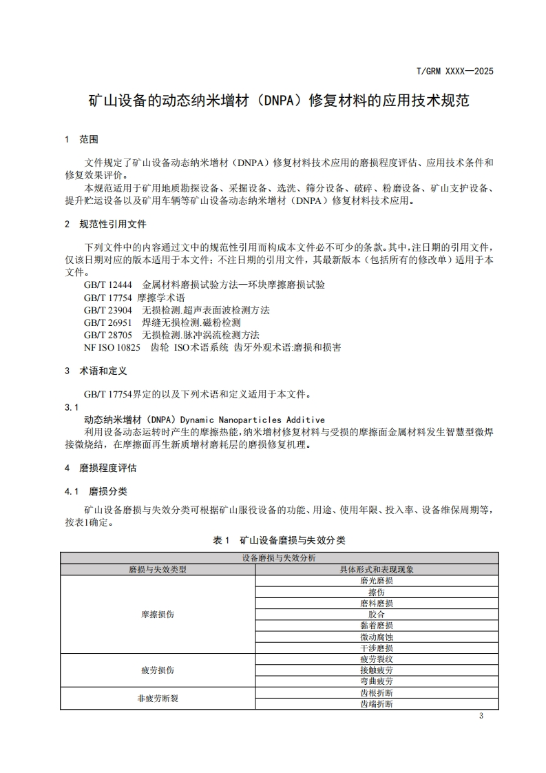 矿山设备用动态纳米增材(DNPA)修复材料应用技术规范348072@abc昨天发布关注私信1.19MB9页037矿山设备用动态纳米增材(DNPA)修复材料应用技术规范此内容为付费资源,请付费后查看¥19¥23黄金会员免费钻石会员免费立即购买您当前未登录!建议登陆后购买,可保存购买订单付费资源 第1页 / 共9页 第2页 / 共9页 第3页 / 共9页 第4页 / 共9页 第5页 / 共9页 试读已结束,还剩4页,您可下载完整版后进行离线阅读 THE END标准规范 文本预览 ICS **CCS **I/GRM中关村绿色矿山产业联盟团体标准T/GRM XXXX-2025矿山设备用动态纳米增材(DNPA)修复材料应用技术规范2025-07-30发布2025-08-01实施中关村绿色矿山产业联盟发布 查看更多 收起部分 喜欢就支持一下吧收藏