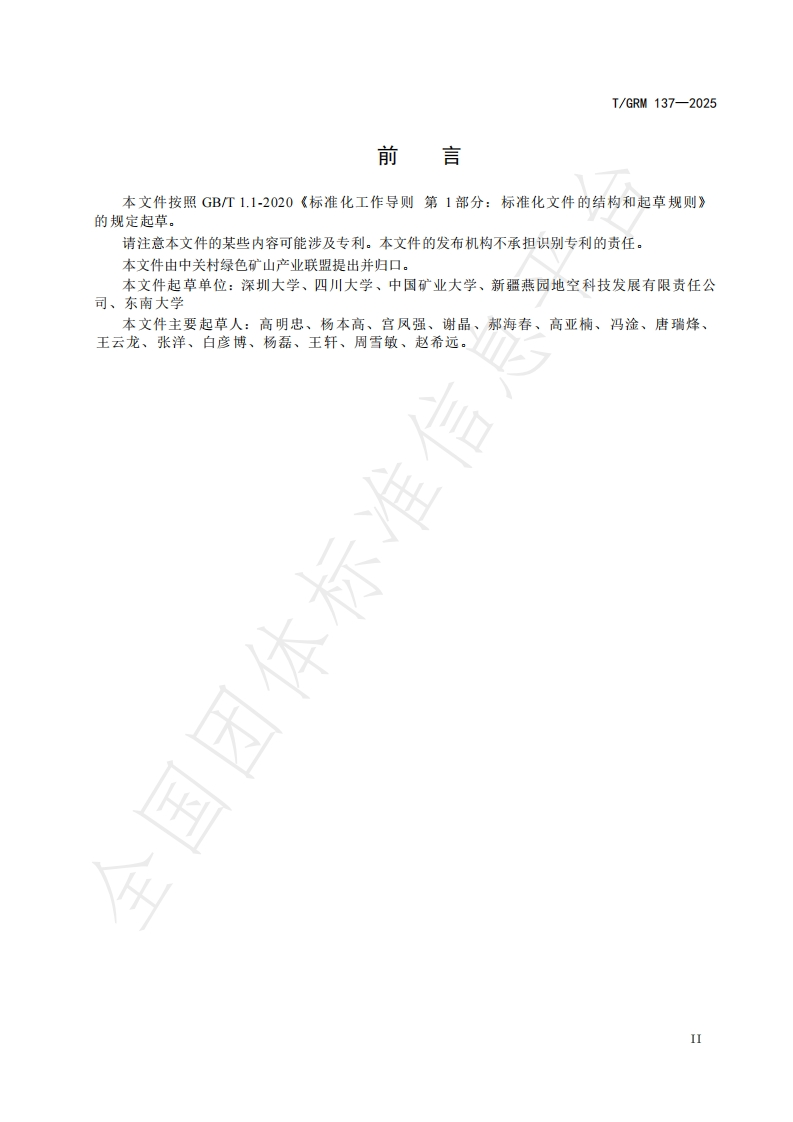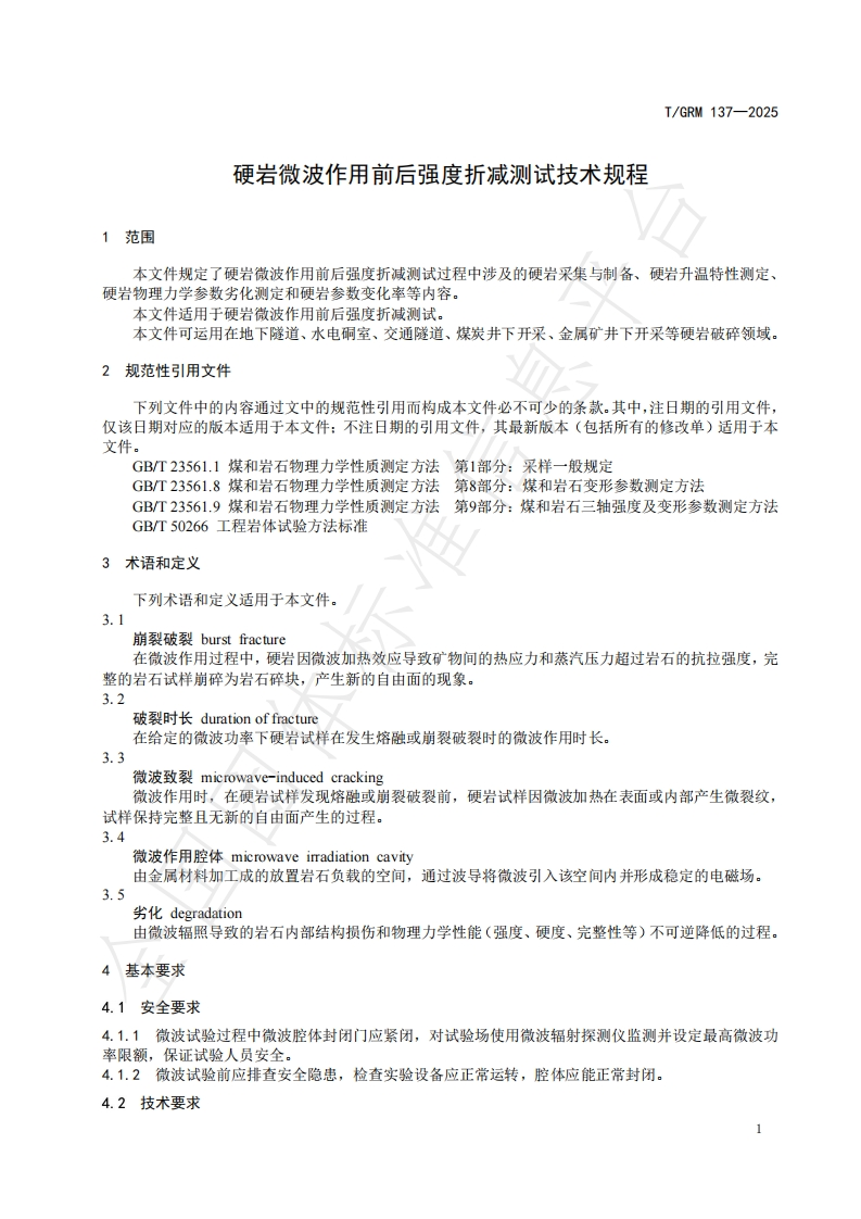 ICS73.020CCS P 70I/GRM中关村绿色矿山产业联盟团体标准T/GRM137-2025硬岩微波作用前后强度折减测试技术规程Technical requirement for strength degradation testing of hard rock before and aftermicrowave irradiation国团体2025-08-11发布2025-08-11实施中关村绿色矿山产业联盟发布