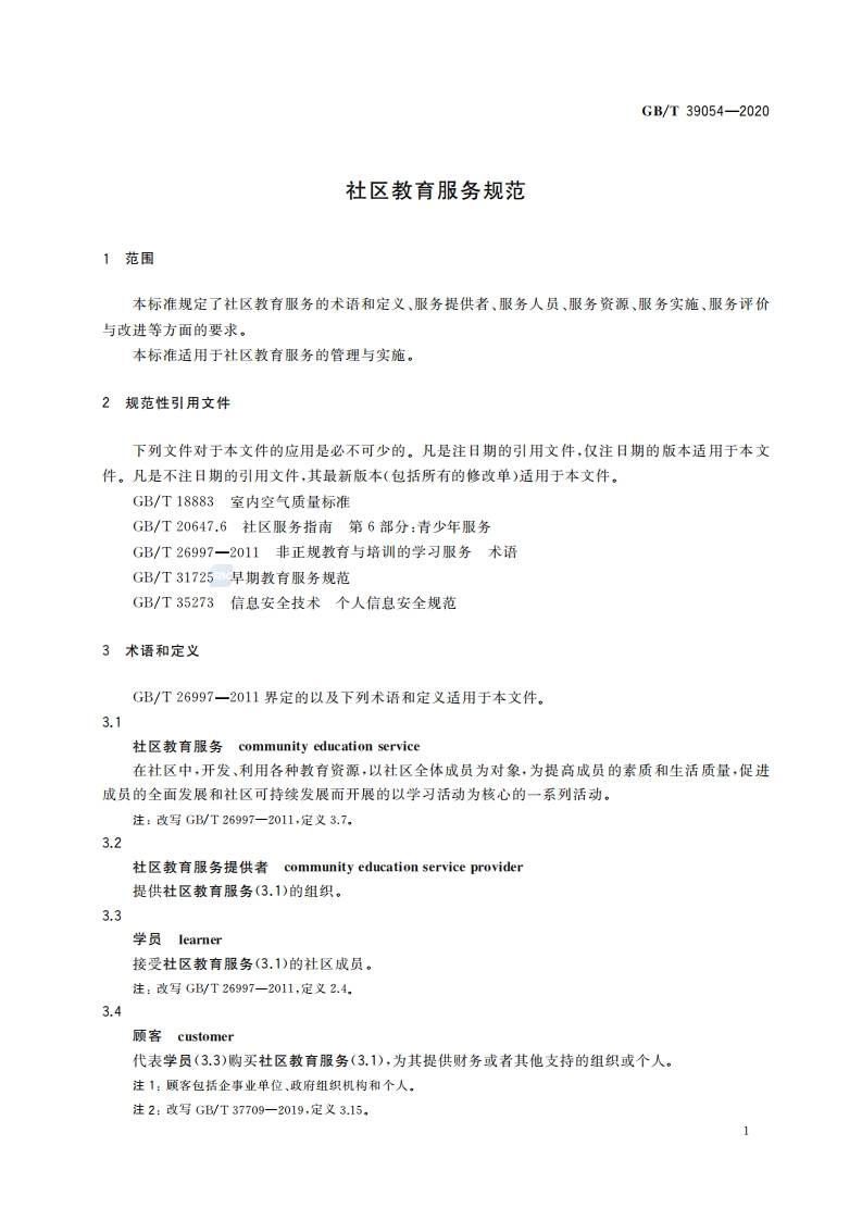 社区教育服务规范Specificationforcommunityeducationservice348072@abc昨天发布关注私信0.76MB11页040社区教育服务规范Specificationforcommunityeducationservice此内容为付费资源,请付费后查看¥19¥23黄金会员免费钻石会员免费立即购买您当前未登录!建议登陆后购买,可保存购买订单付费资源 第1页 / 共11页 第2页 / 共11页 第3页 / 共11页 第4页 / 共11页 第5页 / 共11页 试读已结束,还剩6页,您可下载完整版后进行离线阅读 THE END标准规范 文本预览 ICS03.080A16GB中华人民共和国国家标准GB/T39054-2020社区教育服务规范Specification for community education service2020-09-29发布2021-04-01实施国家市场监督管理总局发布国家标准化管理委员会 查看更多 收起部分 喜欢就支持一下吧收藏