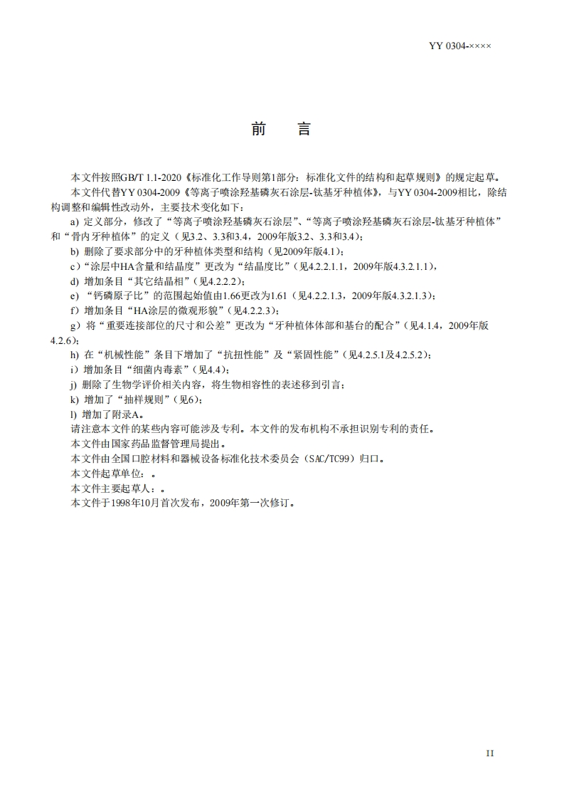 等离子喷涂羟基磷灰石涂层-钛基牙种植体348072@abc前天发布关注私信0.35MB12页028等离子喷涂羟基磷灰石涂层-钛基牙种植体此内容为付费资源,请付费后查看¥19¥23黄金会员免费钻石会员免费立即购买您当前未登录!建议登陆后购买,可保存购买订单付费资源 第1页 / 共12页 第2页 / 共12页 第3页 / 共12页 第4页 / 共12页 第5页 / 共12页 试读已结束,还剩7页,您可下载完整版后进行离线阅读 THE END标准规范 文本预览 ICs11.060.10C33YY中华人民共和国医药行业标准YY 0304-XXXX代替YY0304-2009等离子喷涂羟基磷灰石涂层-钛基牙种植体Plasma sprayed hydroxyapatitecoated-titaniumdental implant(征求意见稿)20xx-xx-Xx发布20xx-Xx-Xx实施国家药品监督管理局发布 查看更多 收起部分 喜欢就支持一下吧收藏