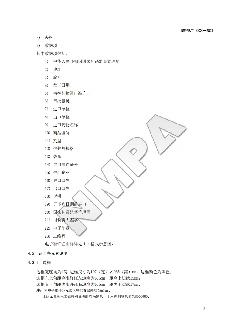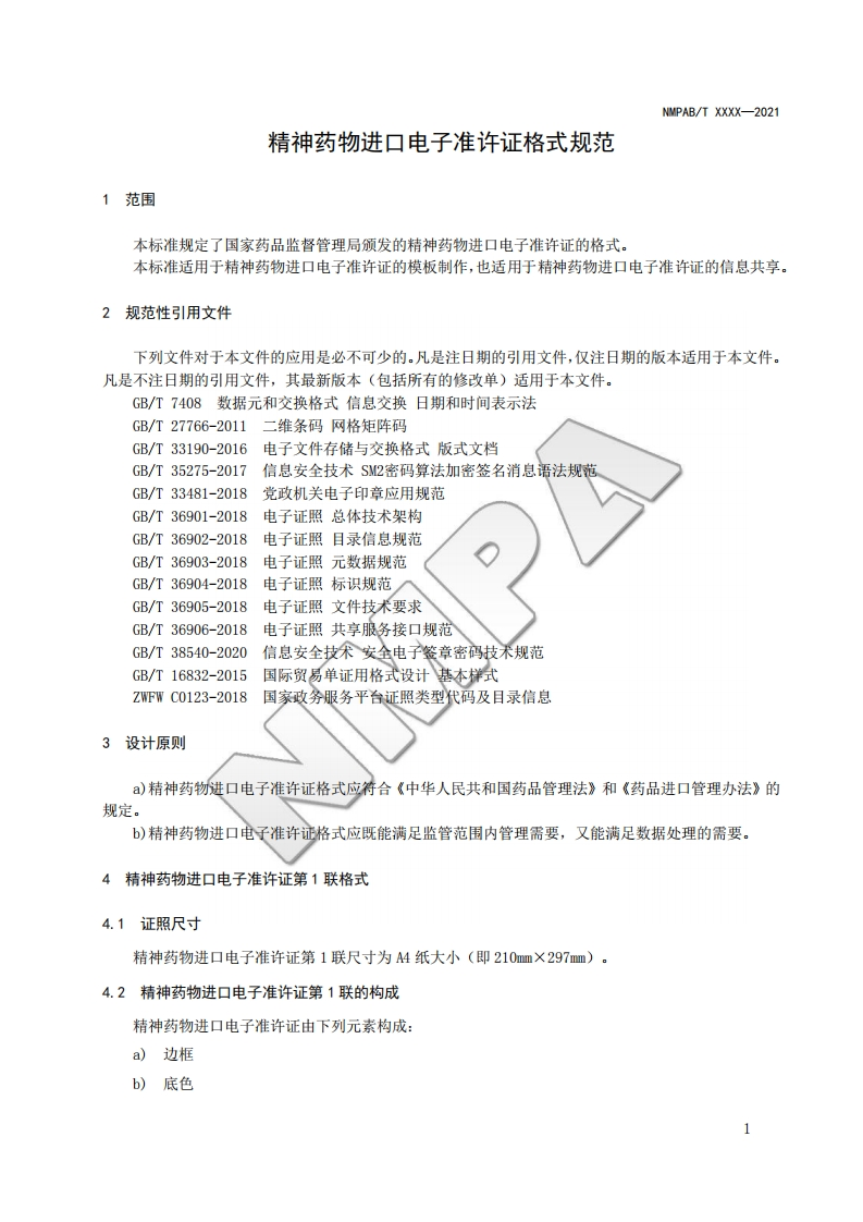 精神药物进口电孓准许证格式Formsforelectroniccertificateofpsychotropicsubstancesimportauthorization(征求意见稿)348072@abc前天发布关注私信2.70MB25页040精神药物进口电孓准许证格式Formsforelectroniccertificateofpsychotropicsubstancesimportauthorization(征求意见稿)此内容为付费资源,请付费后查看¥19¥23黄金会员免费钻石会员免费立即购买您当前未登录!建议登陆后购买,可保存购买订单付费资源 第1页 / 共25页 第2页 / 共25页 第3页 / 共25页 第4页 / 共25页 第5页 / 共25页 试读已结束,还剩20页,您可下载完整版后进行离线阅读 THE END标准规范 文本预览 NMPAB国家药品监督管理局信息化标准NMPAB/T xxxx-2021精神药物进口电准许证格式Forms for electronic certificate of psychotropic substances import authorization征求意见稿)2021-XX-XX发布2021-XX-XX实施国家药品监督管理局发布 查看更多 收起部分 喜欢就支持一下吧收藏
