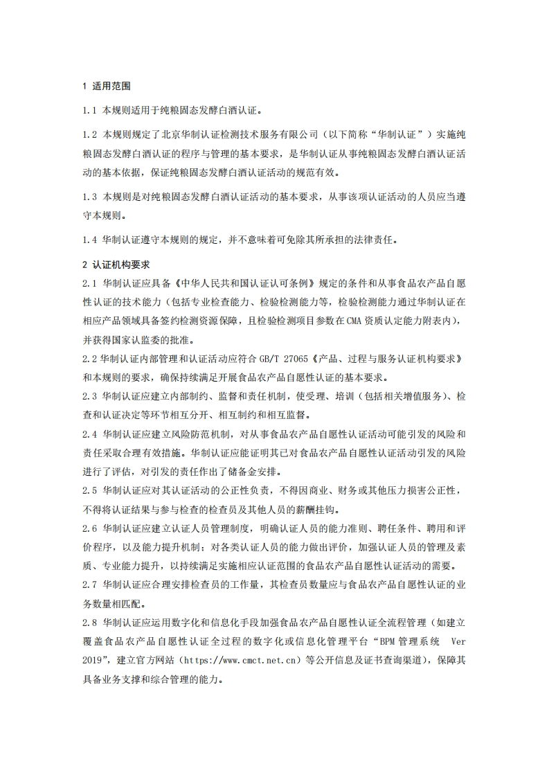 纯粮固态发酵白酒认证规则_11348072@abc前天发布关注私信0.55MB44页026纯粮固态发酵白酒认证规则_11此内容为付费资源,请付费后查看¥19¥23黄金会员免费钻石会员免费立即购买您当前未登录!建议登陆后购买,可保存购买订单付费资源 第1页 / 共44页 第2页 / 共44页 第3页 / 共44页 第4页 / 共44页 第5页 / 共44页 试读已结束,还剩39页,您可下载完整版后进行离线阅读 THE END标准规范 文本预览 CC华制认证检测Q/CMCT-R-PV03-02-2022版号:B/0受控号:纯粮固态发酵白酒认证规则2025年06月12日发布2025年06月12日实施北京华制认证检测技术服务有限公司发布 查看更多 收起部分 喜欢就支持一下吧收藏