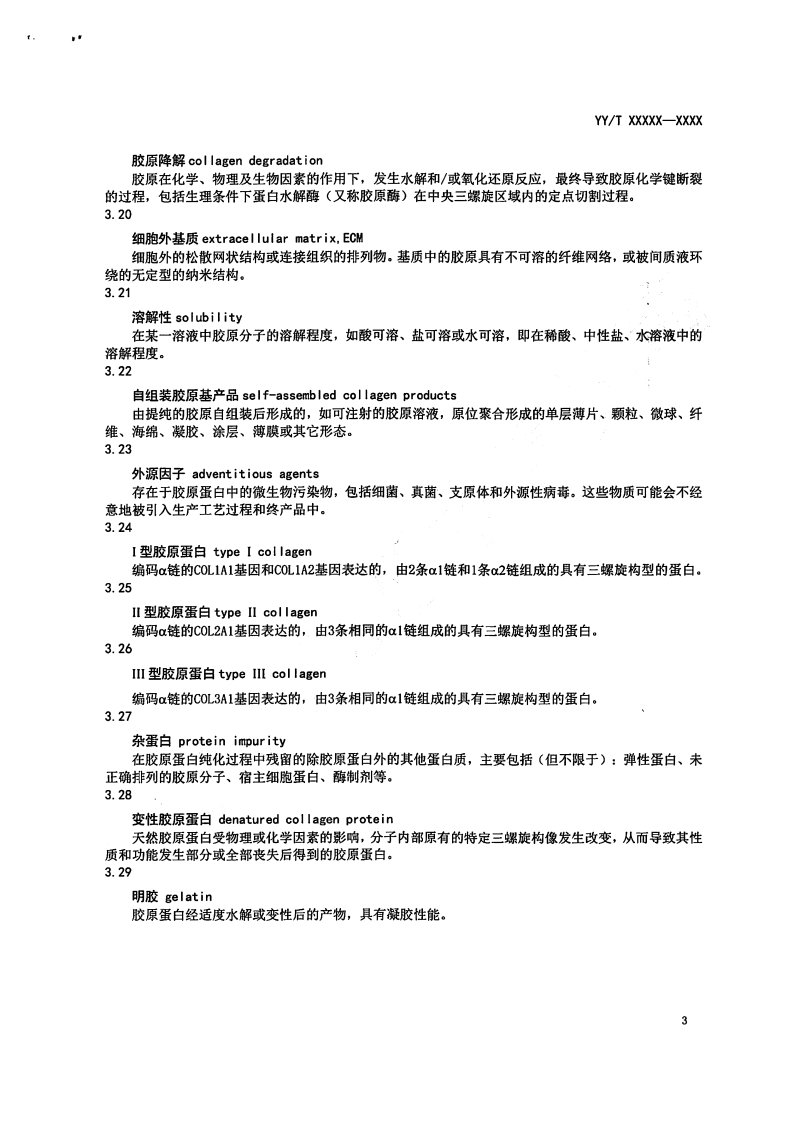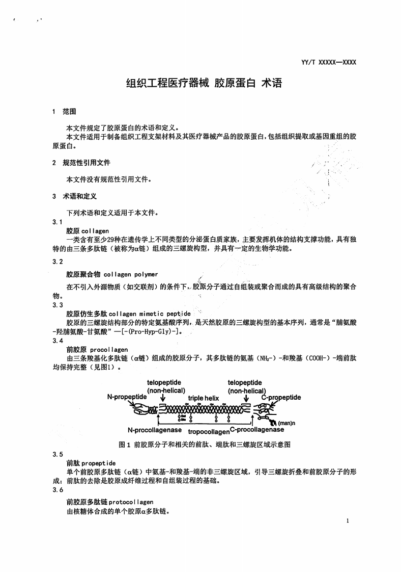1CS11.040.40CCS c30YY中华人民共和国医药行业标准YY/T XXXXX-XXXX组织工程医疗器械胶原蛋白术语Tissue engineering medical device-Collagen-Terminology(征求意见稿)(2022年7月)在提交反馈意见时,请将您知道的相关专利连同支持性文件一并附上。建议本标准发布12个月后开始实施XXXX-XX-XX发布XXXx-Xx-XX实施国家药品监督管理局发布
