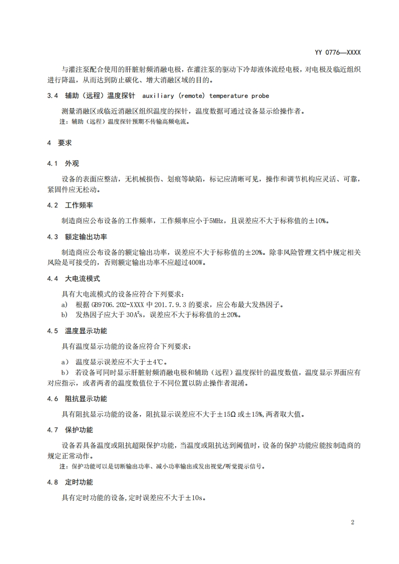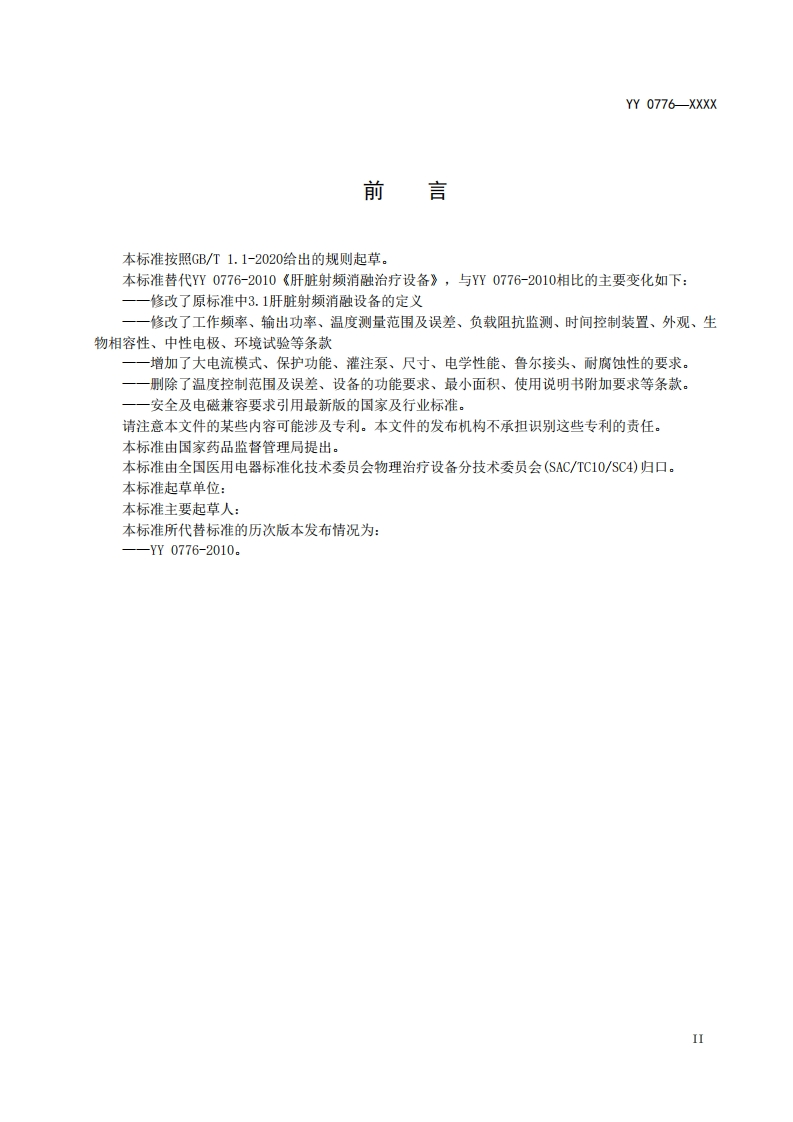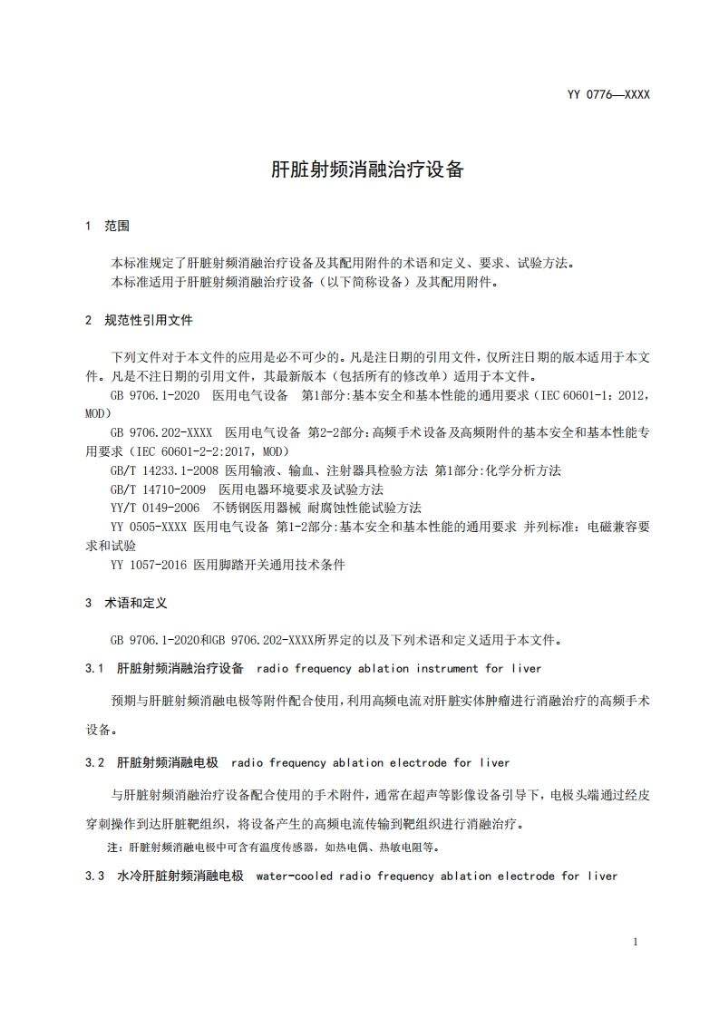 肝脏射频消融治疗设备Radiofrequencyablationequipmentforliver点击此处添加与国际标准一致性程度的标识(征求意见稿)348072@abc5天前发布关注私信0.59MB9页036肝脏射频消融治疗设备Radiofrequencyablationequipmentforliver点击此处添加与国际标准一致性程度的标识(征求意见稿)此内容为付费资源,请付费后查看¥19¥23黄金会员免费钻石会员免费立即购买您当前未登录!建议登陆后购买,可保存购买订单付费资源 第1页 / 共9页 第2页 / 共9页 第3页 / 共9页 第4页 / 共9页 第5页 / 共9页 试读已结束,还剩4页,您可下载完整版后进行离线阅读 THE END标准规范 文本预览 1CS11.040.60C42中华人民共和国医药行业标准YY 0776-XXXX代替YY0776-2010肝脏射频消融治疗设备Radio frequency ablation equipment for liver点击此处添加与国际标准一致性程度的标识(征求意见稿)XXXX-XX-XX发布XXXX-XX-XX实施国家药品监督管理局发布 查看更多 收起部分 喜欢就支持一下吧收藏